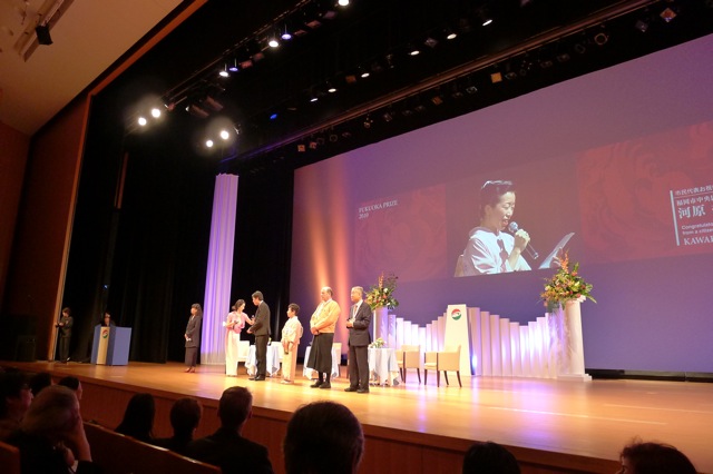 壇上には受賞者と、福岡市長、福岡県副知事、福岡アジア文化賞委員会関係の各位列席のもと、檀ふみさんの司会で知的でかつ楽しさ溢れるメッセージやトークが行なわれました。