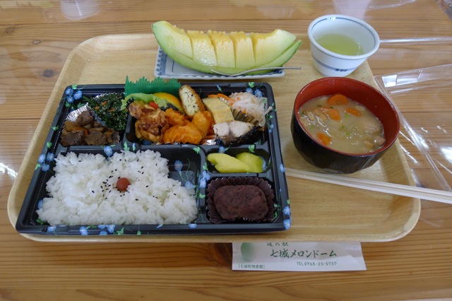 七城町のメロンドームでオリジナル弁当+メロン付き、をいただきました。
