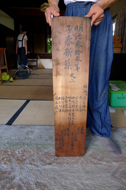 明治33年竣工を告げる第一級の一次史料・棟札を同人参加の嘉月氏が発見しました。重要な第一級の一次史料です。築後110年の建物である事が明らかになりました。文化財クラスの建物概要に参加者全員が驚嘆しました。