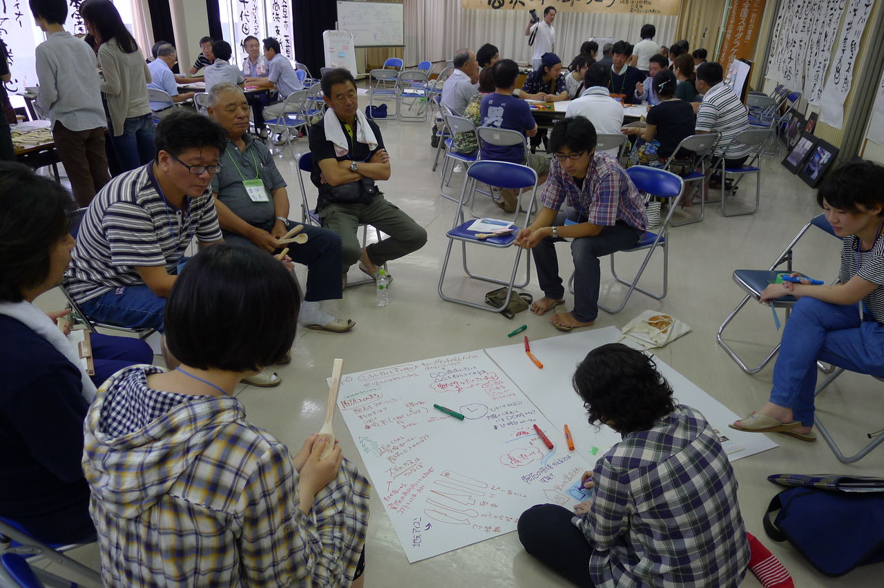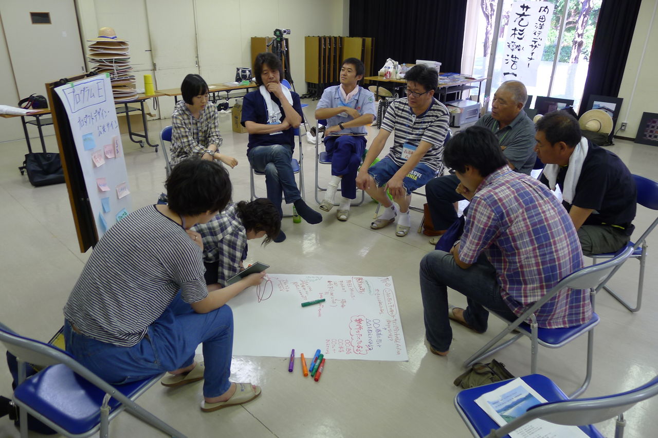 しかしながら、あくまでこのような踏査行は私たち外部からの参観者のために行うものではありません。あくまで高浜の地域が、さらにより豊かな里として育っていくために、私たちの外からの感受性や価値観と交流していただく中で、高浜地区のかたがたがあらかじめ有されてきた地元愛や感情をより高い次元に育てていくことができるものと考えていました。相互が織りなす丁々発止のやりとりや協働作業がここでは大きな効果を生み出す契機となっていくだろうと考えていました。リデザインと私があえていったのは、けっしてこれまでの高浜地区を批判したり否定しようというものではありません。むしろ旧来の文脈に寄り添って考えた際に、そこからより大胆に次の一歩を生み出すためのデザインが可能なのではないか、それを荒唐無稽でもいいからまずは提案し合ってみませんか、そんな挑発を含めた提案だったのです。