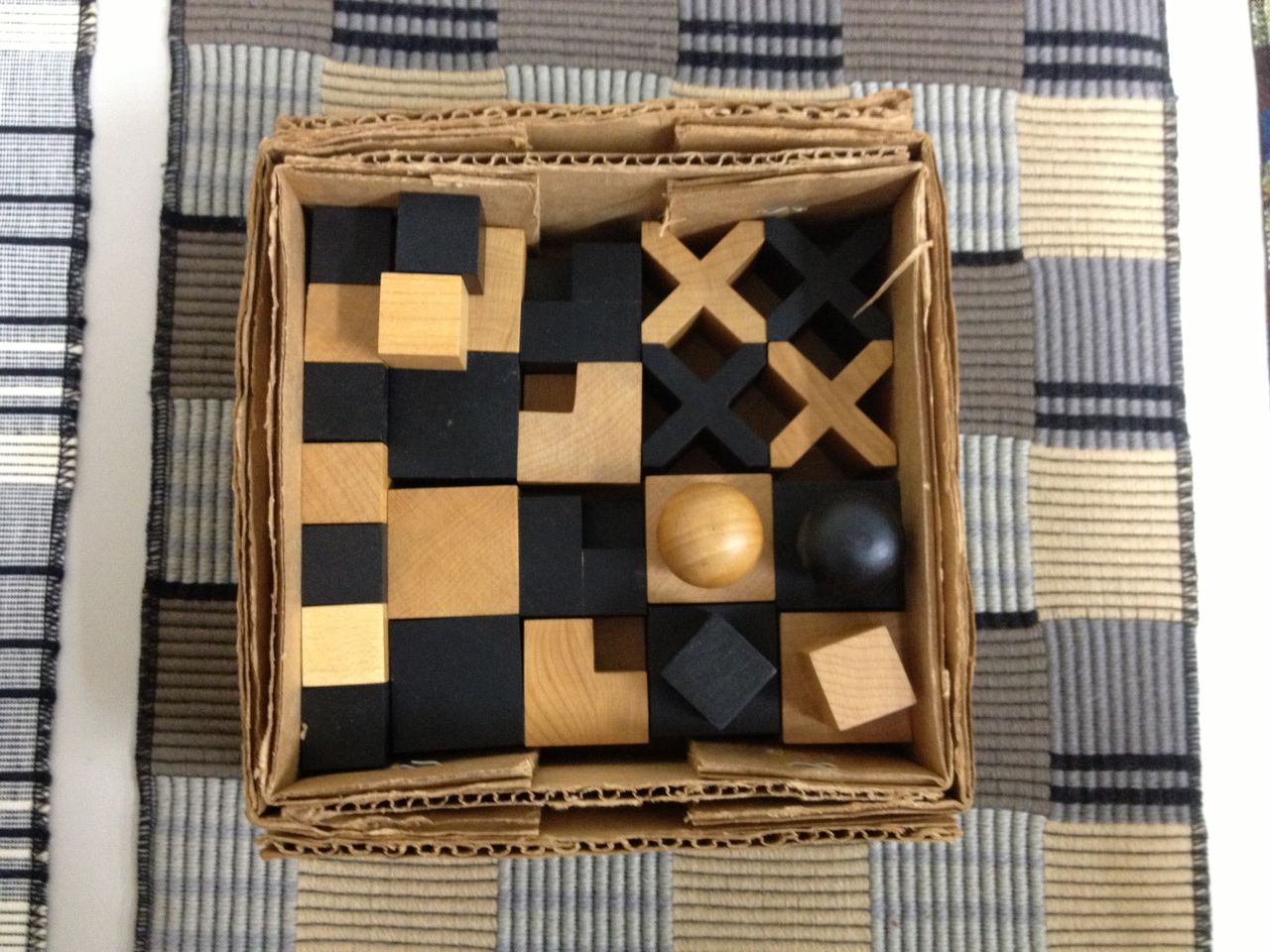 立方体・球・円筒といった幾何学的な形を結びつけ従来のチェス駒を踏襲した