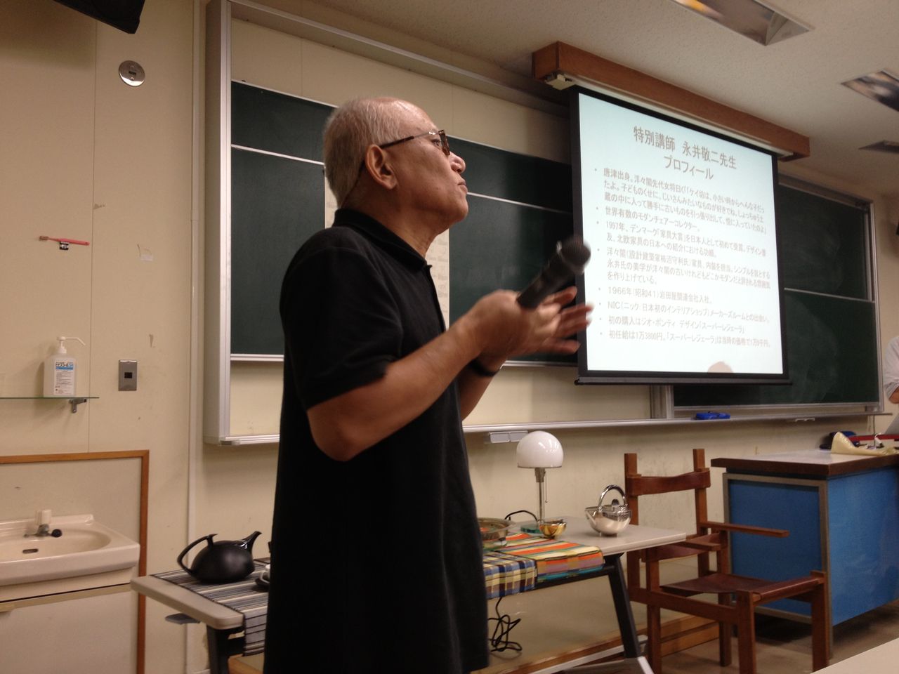 ゲスト講師には、なんと世界有数の椅子コレクターで有名な永井敬二先生に