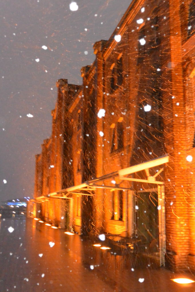 ④最後の締めは吹雪の中、赤煉瓦倉庫群へ。