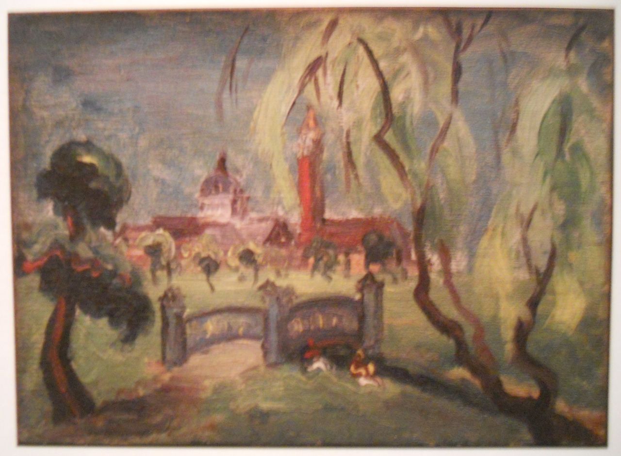 展覧品の一つには「総督府」と題名が記されていましたが、絵の建物の遠景の特徴を見ながら判断すれば、これは付近の「台南地方法院」にほかならないのです。