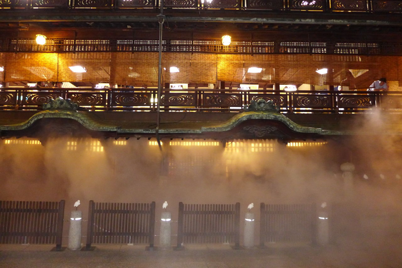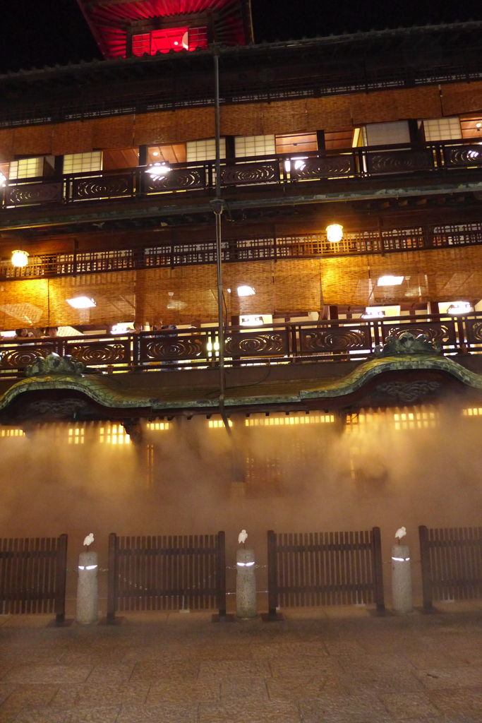 見えなくなってくると、あちらこちらから歓声が上がります。月夜の霧に道後温