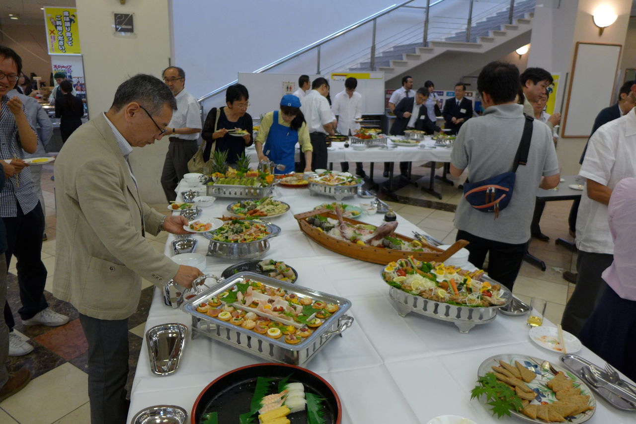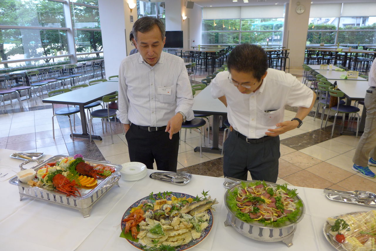 ロビーで見た、新しい名物づくりプロジェクトの成果「ゆだまん」も、興味深か