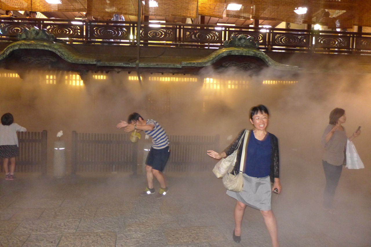 すが、霧が噴出し始めると、人々からどよめきが起こります。さらに周囲が霧で