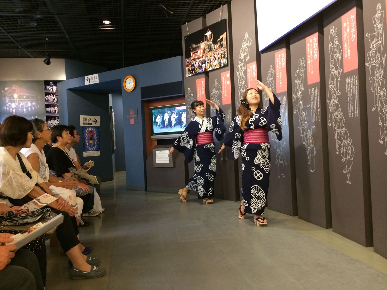なかでは郡上踊り体験も!案内人の方の名調子に一同大盛り上がり。