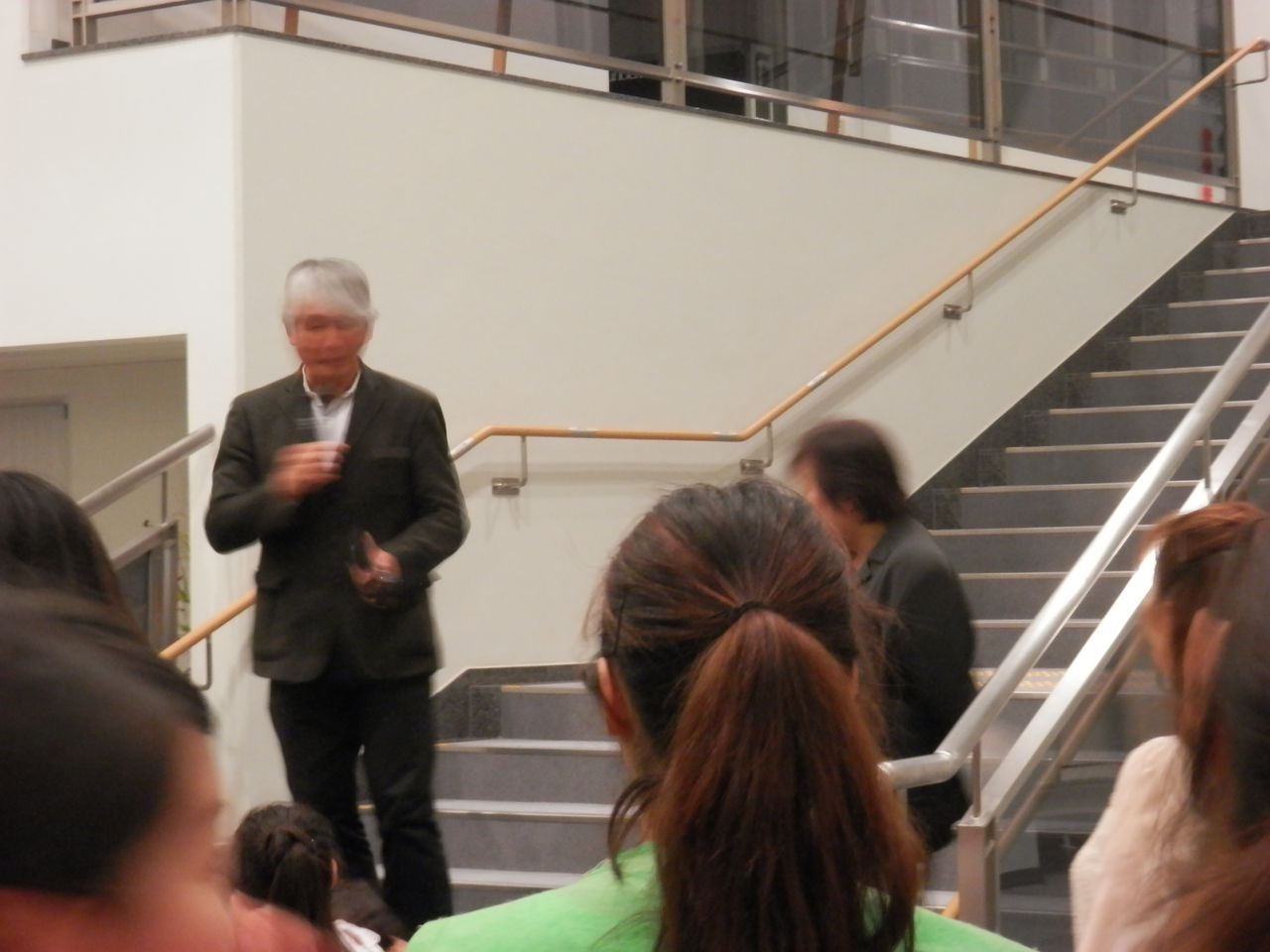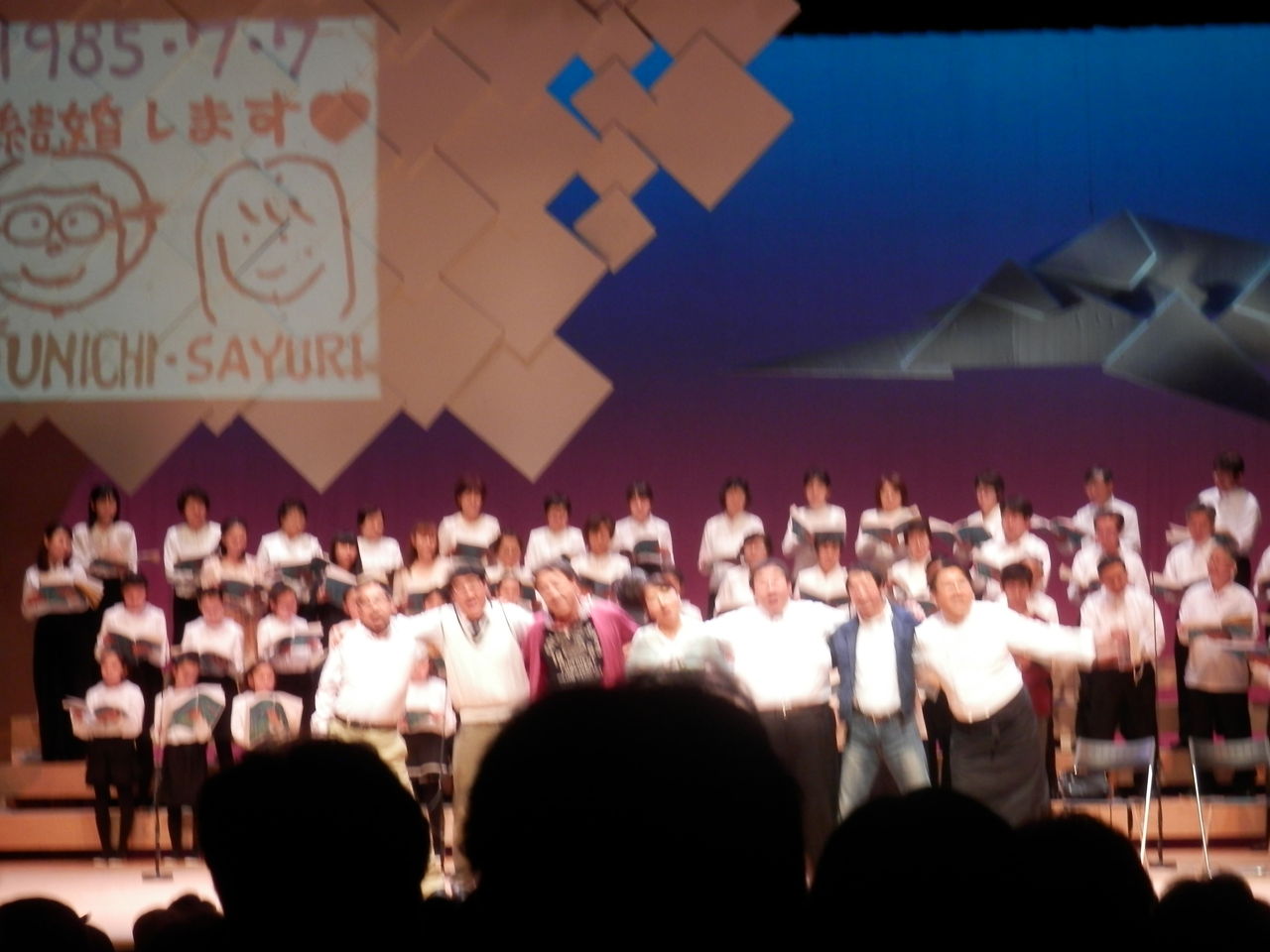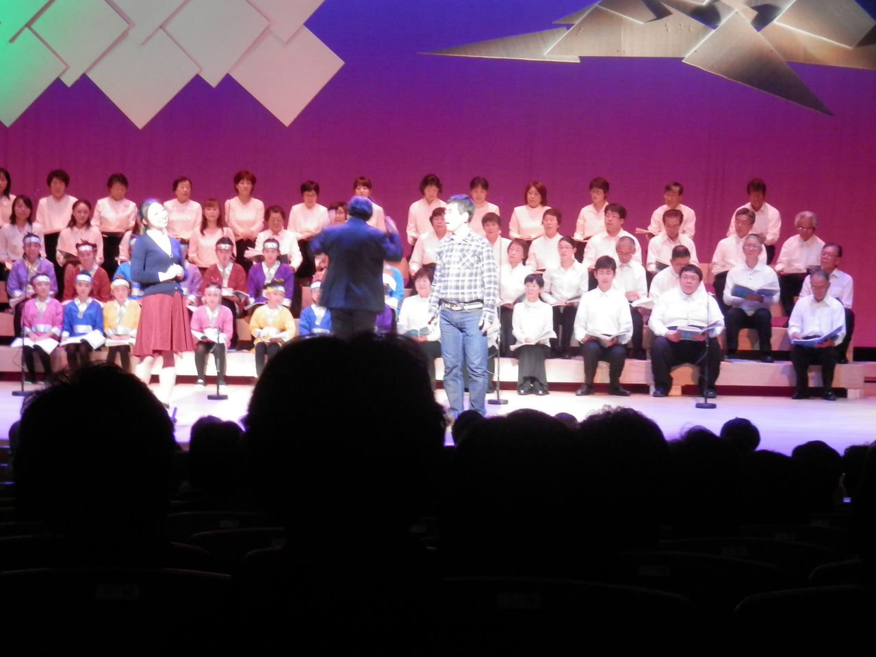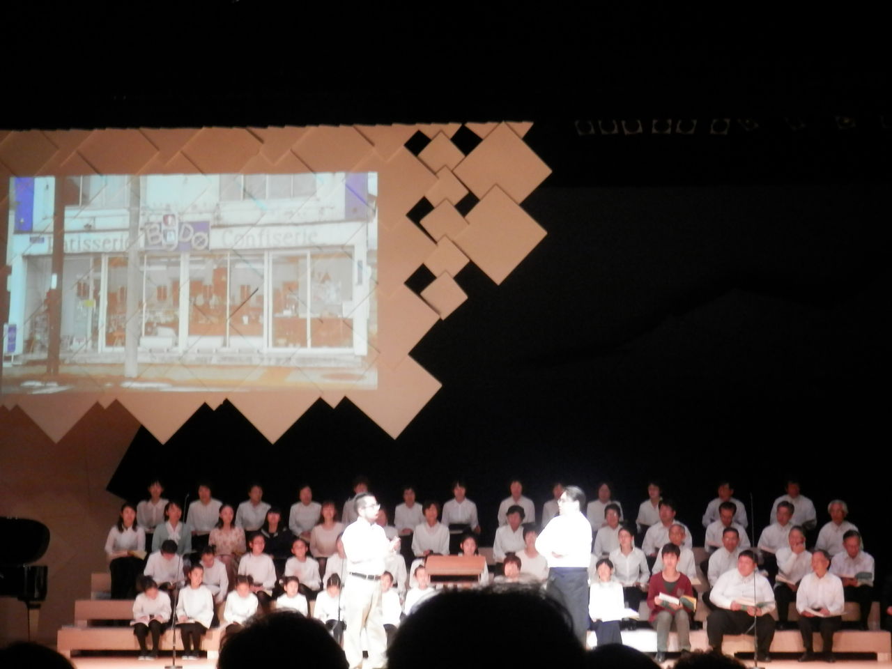 ピンクの洋服は深川市民で現地合唱指導をされた菊入三恵さん。声楽・ピアノ教室主催。この方が四国から来た、この物語の一人の主人公ともいえる存在。すんごい上手でした。