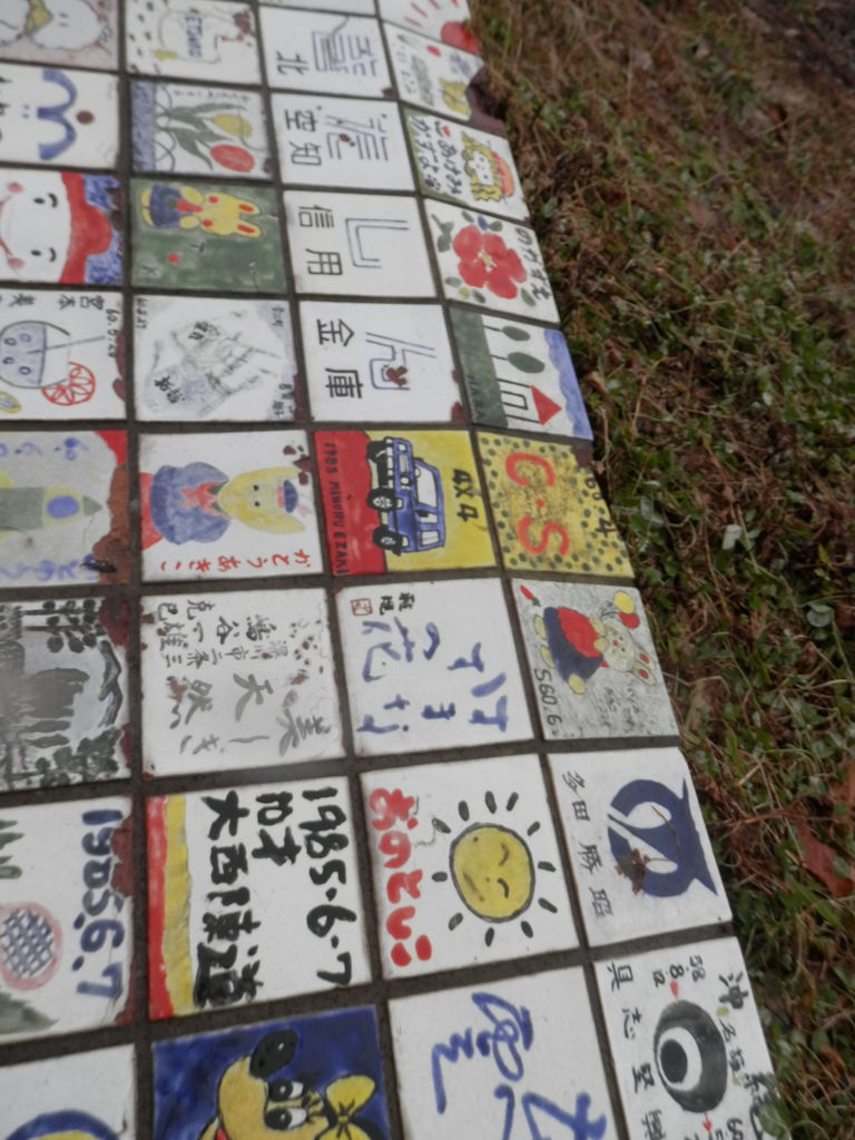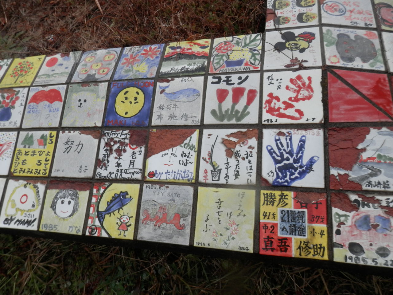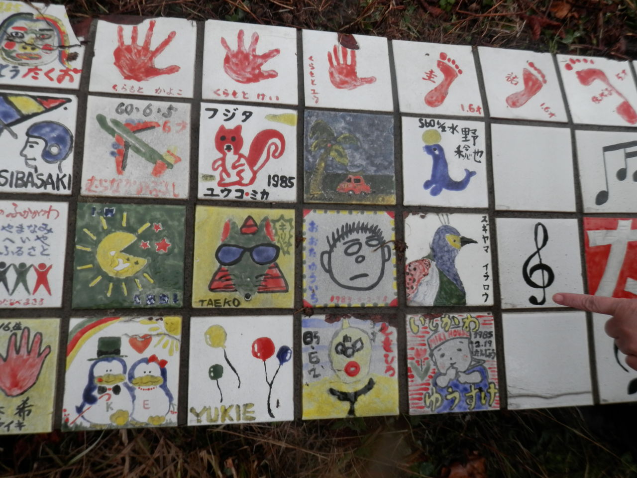 もう一つ、カナデル広場という広場がありました。深川市民からお金をあつめて皆でタイルに自分の思いを書き、それを集めたオブジェを作りました。でも今では、このカナデル広場は使われなくなり、このオブジェが残ってます。