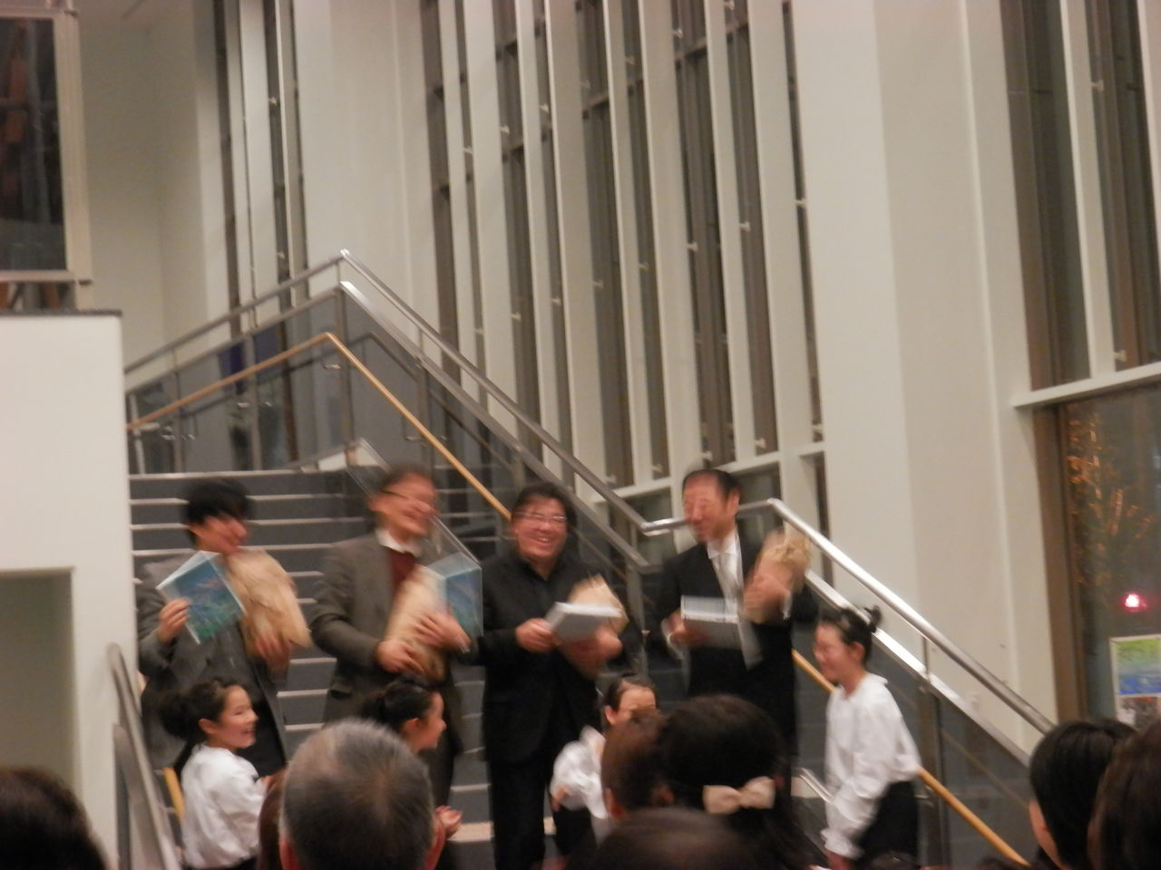 歌・合唱の伴奏はピアノのみでした。他の楽器はありません。白石さんのピアノがずっと勢いが衰えることなくしかし歌声と美しいハーモニーを保ちながらばんばか聞こえました。プロフェッショナルの演奏とはこういうものかと感激したり、感心したり、びっくりしたり、喜んだりしてました。