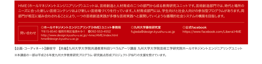 今回のホールマネージメントエンジニアリング(HME)ユニットとリベラルアーツ講座との