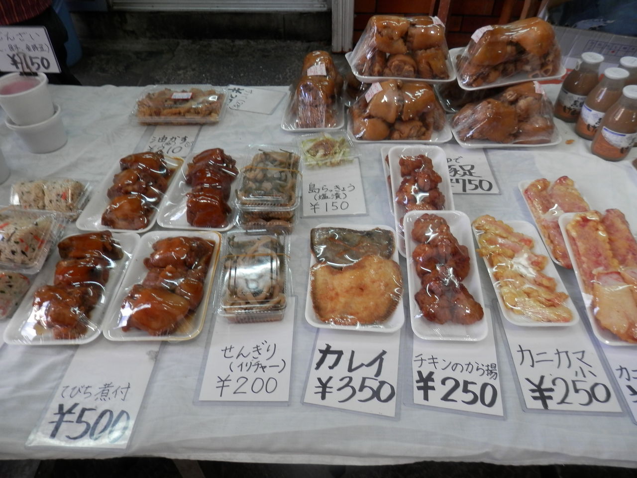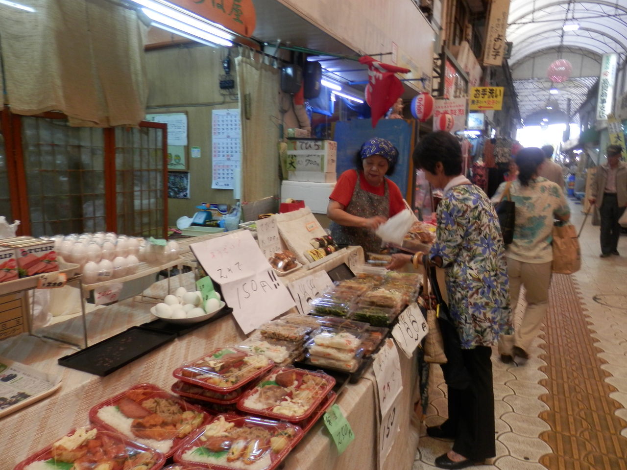 食べ物と雑貨、服などが混在してました。私はシャッター街を見ることが多いのですが、ここは違い、地元の方と思われる買い物客が夕飯の買い物をしていました。