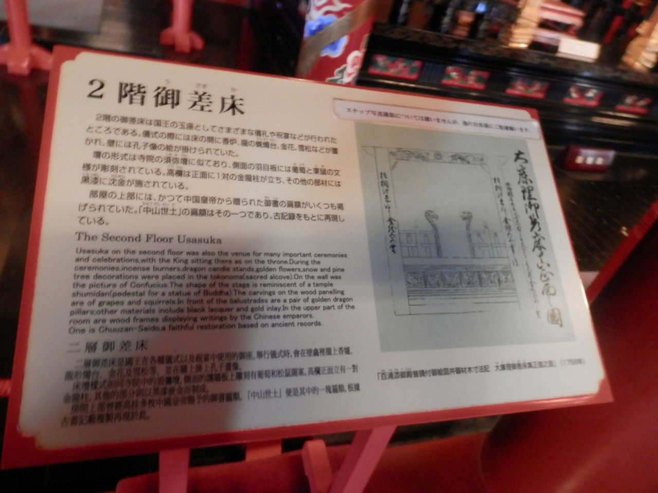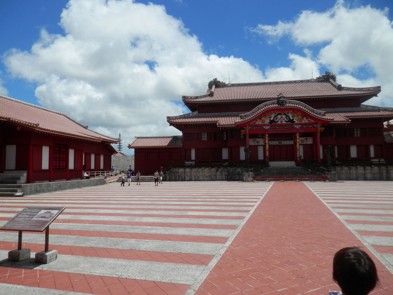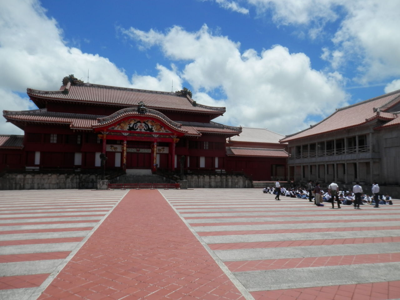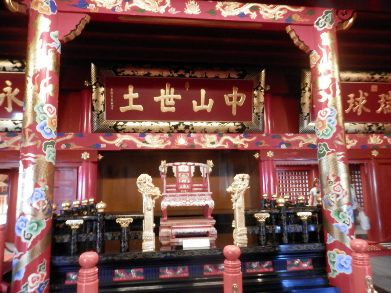 首里城正殿は薬500年にわたり琉球国王の居城(1406年尚巴志)として政治経済文化の中心地でした。。壁の色彩塗装には桐油が塗られています。1945年の沖縄戦で灰燼に帰した首里城は1992年に本土復帰20年を記念して復元されました。