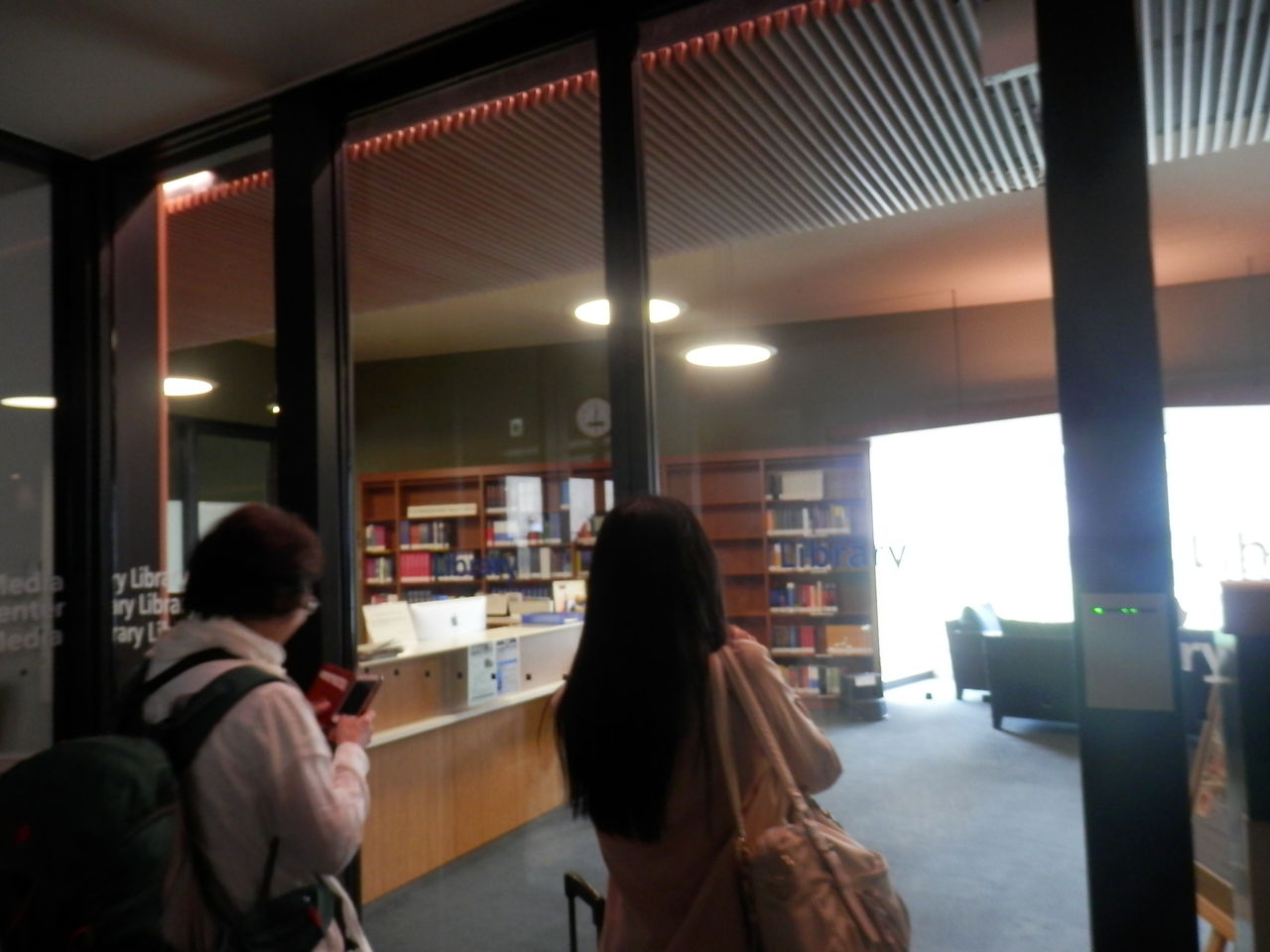 ここは沖縄県立図書館です。熊本市にある「くまもと森都心プラザ図書館」の副館長・河瀬裕子氏とともに、沖縄県立図書館で聞きとり調査をしました。対応して下さったのは田中克代総務班班長と沖縄にある図書館で唯一の社会指導主事・山内さんです。