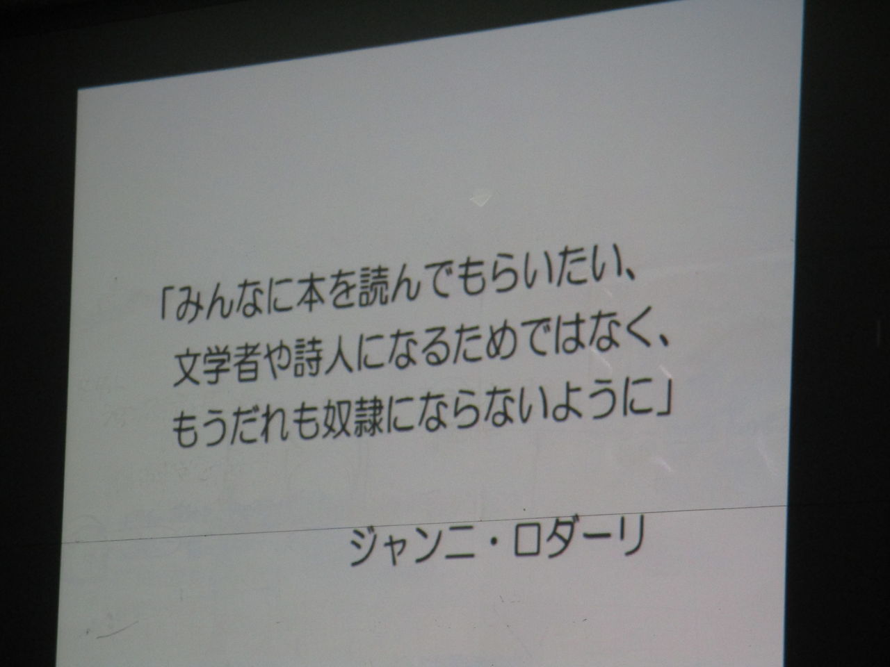 最後にイタリアの作家・児童文学作家のジャンニ・ロダーリの言葉が紹介されました。
