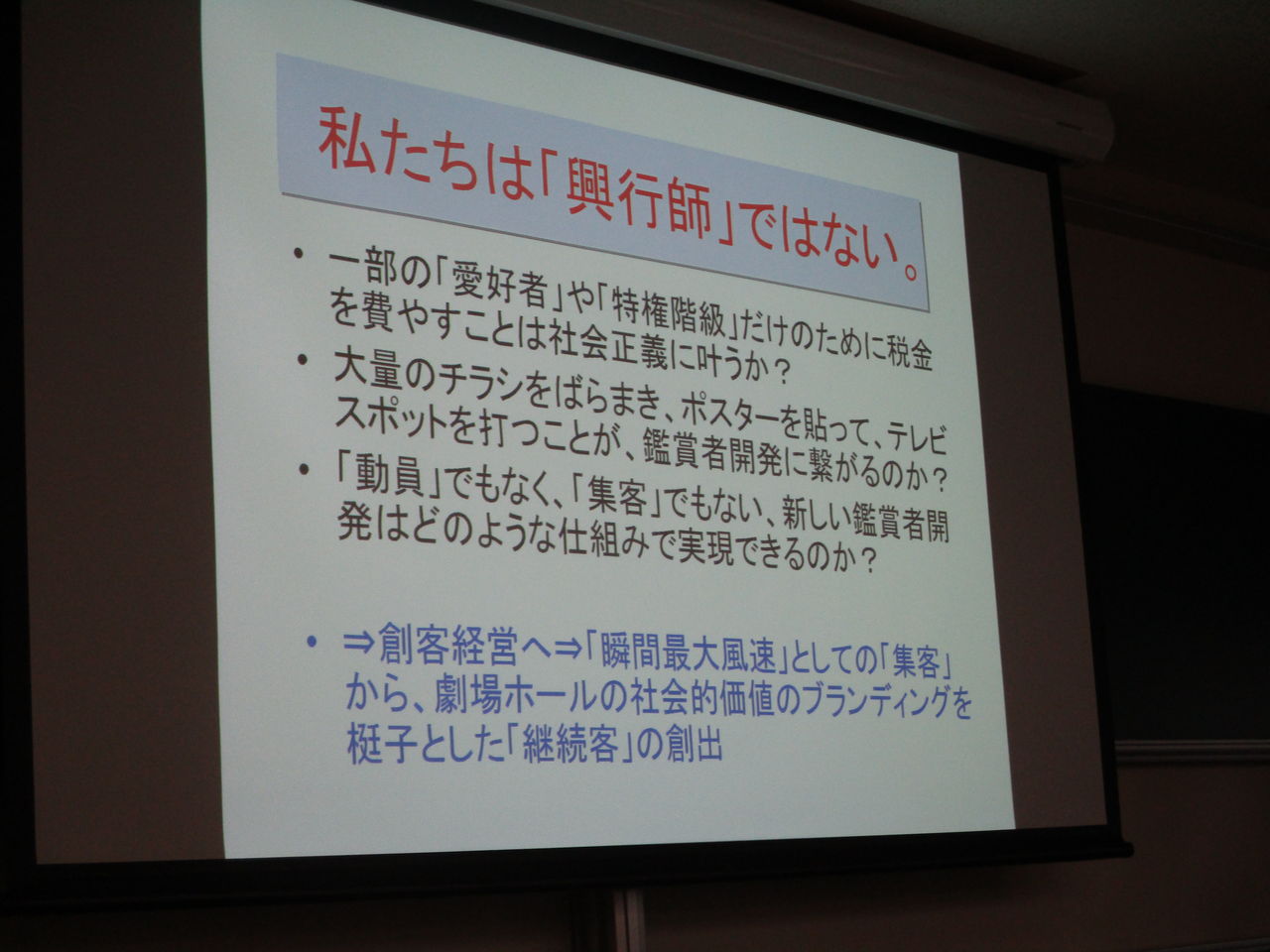 瞬間最大風速としての集客から、劇場ホールの社会的価値のブランディングをてことした継続客の創出。