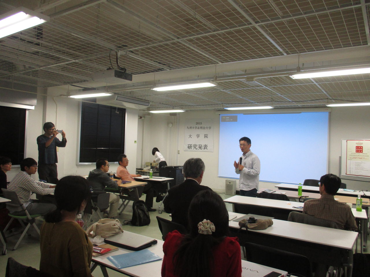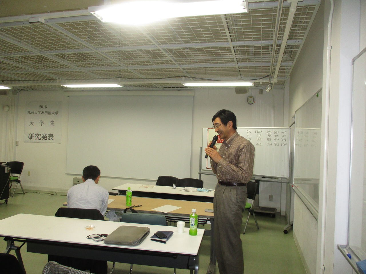 一日かけて参加学生の研究発表と活発な議論が行われました。 発表者は明治大学は