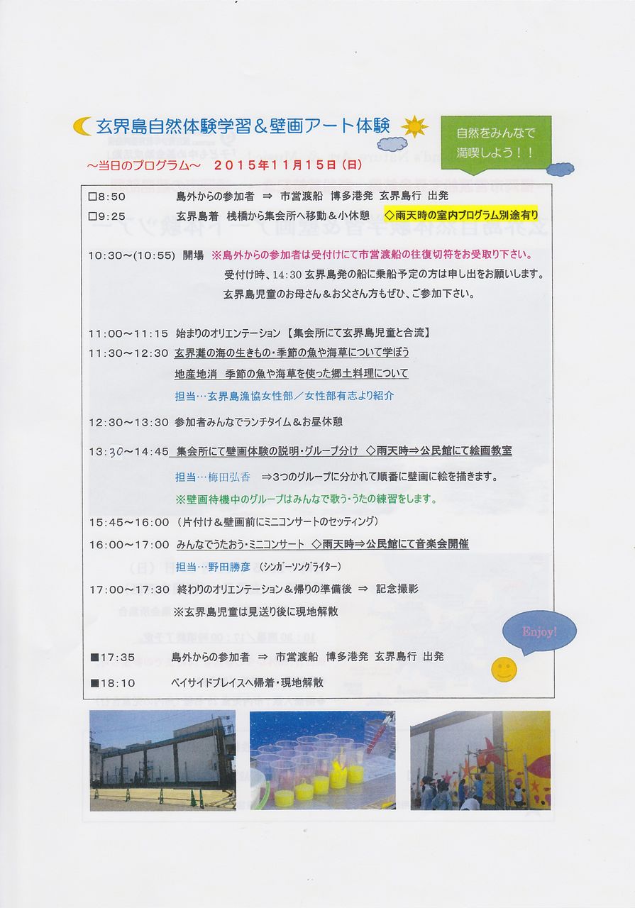 2015年11月15日(日)玄界島にて「玄界島自然体験学習&壁画アート体験ツアー」があります。