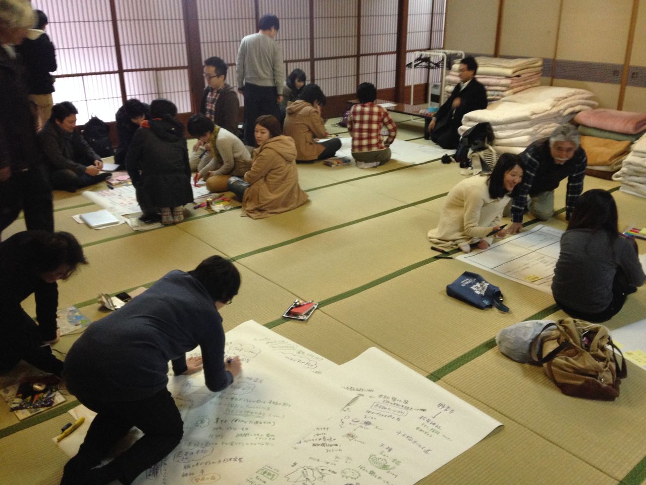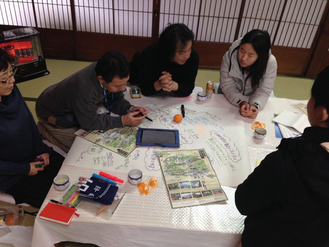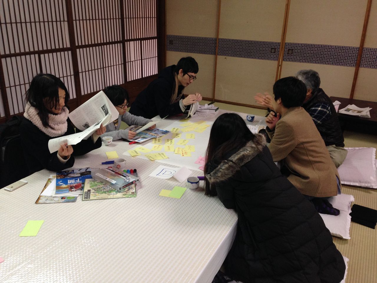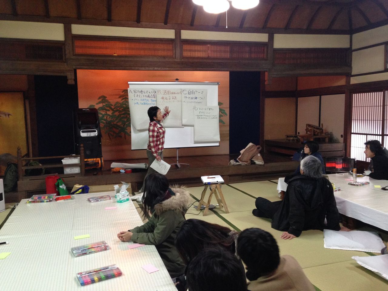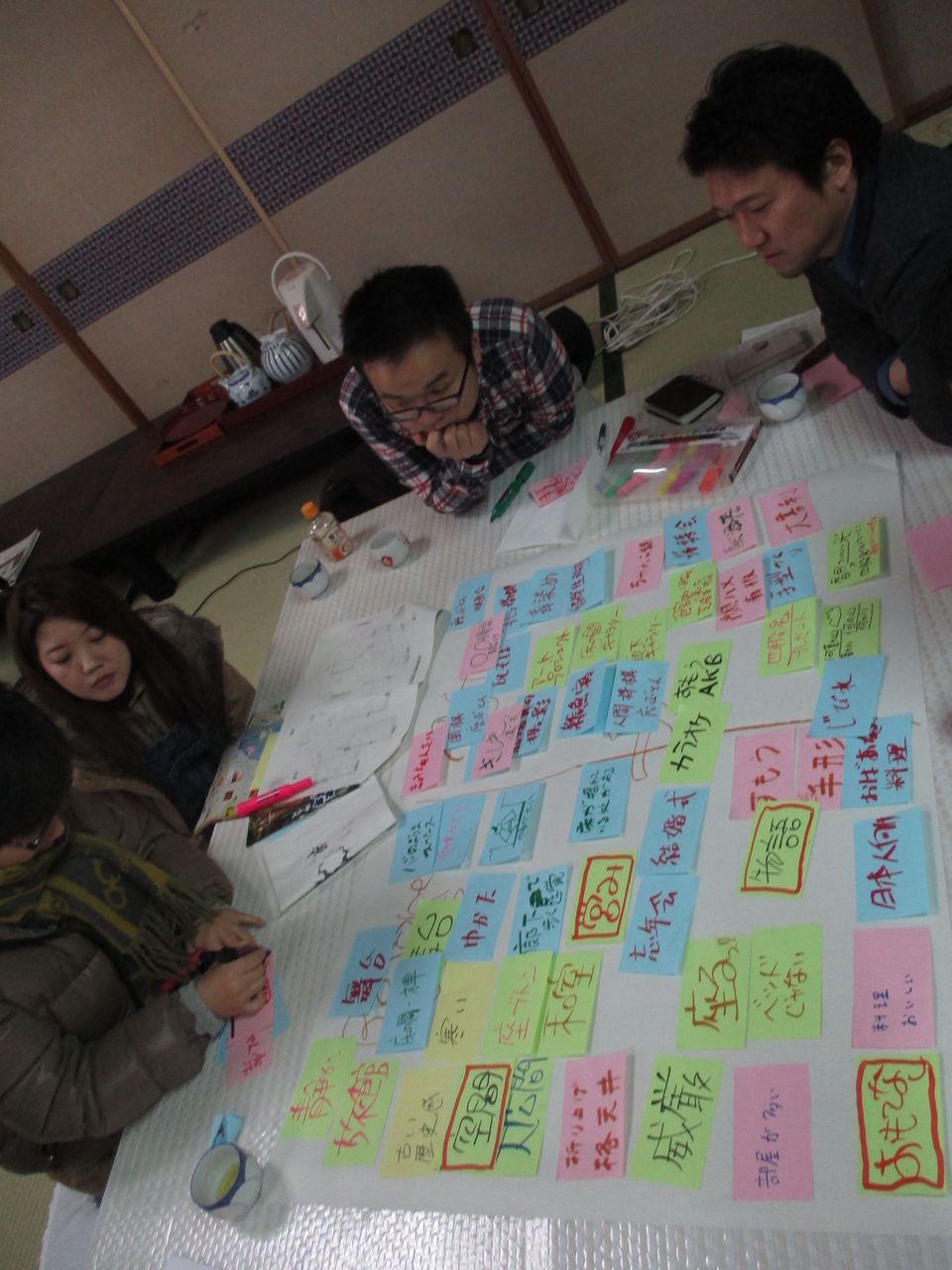 私たちが来た理由である「玉椿旅館魅力再生プロジェクト」でまずグループ分けをしたあと、グループ別に活動をしました。全部で4つのグループです。