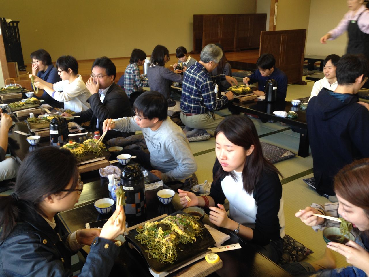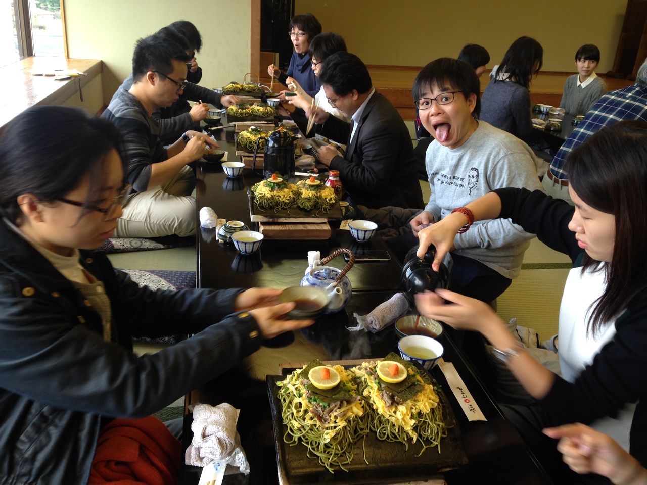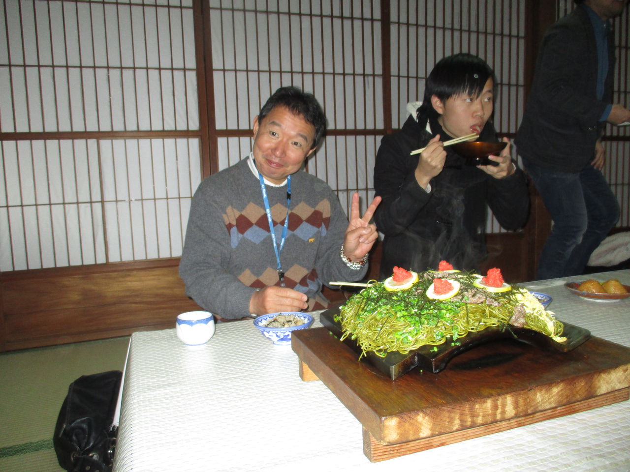 JR九州の取締役の一人である津高守さんは、昨日食べることができなかった瓦そばを食べました。