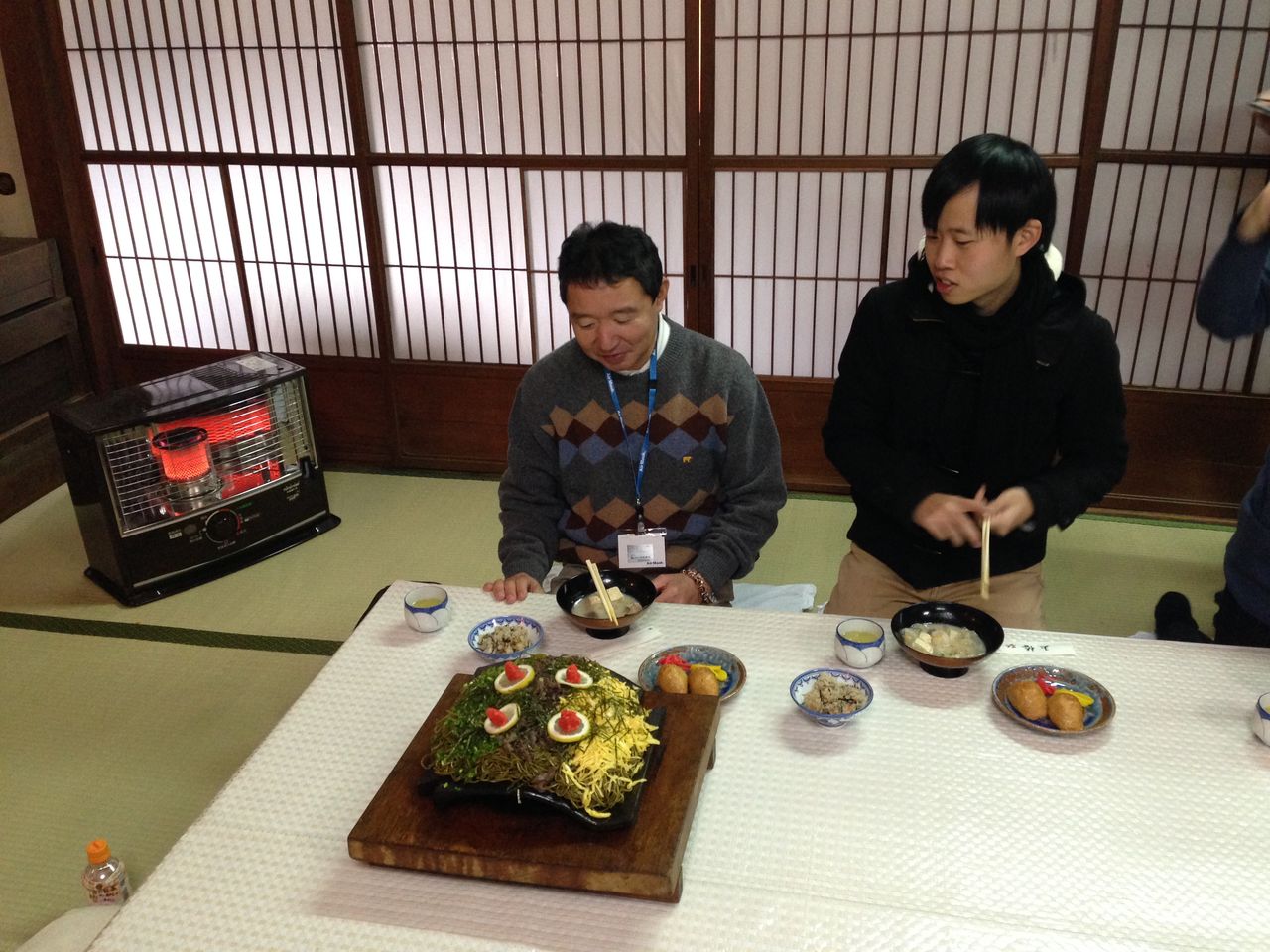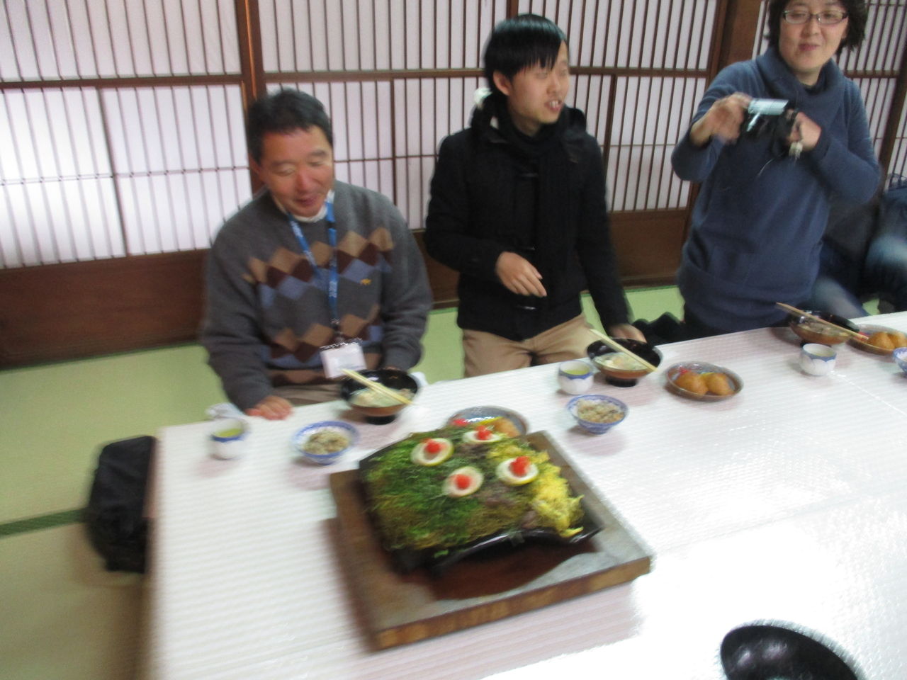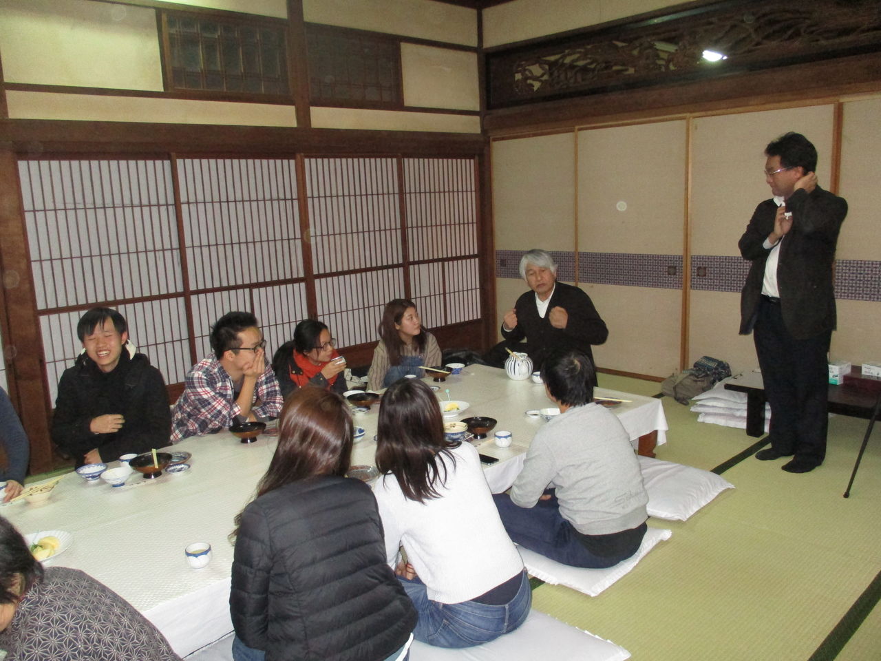 待ちに待った夕食では、猪肉を使った「牡丹鍋」を食べることができました。お肉も出汁も本当に美味しかったです。美味しいものも食べながらも、たくさんの社会人の方々と交流もすることができました。宴会をしながら感じたのがありますが、最近は個人主義が強くて人と人が交流することが若者には難しいのかもしれません。