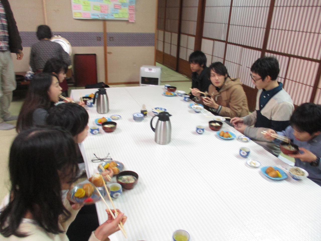 19:00〜 お世話になる方、お世話になった方、社会人参加者ご紹介、夕食、お風呂