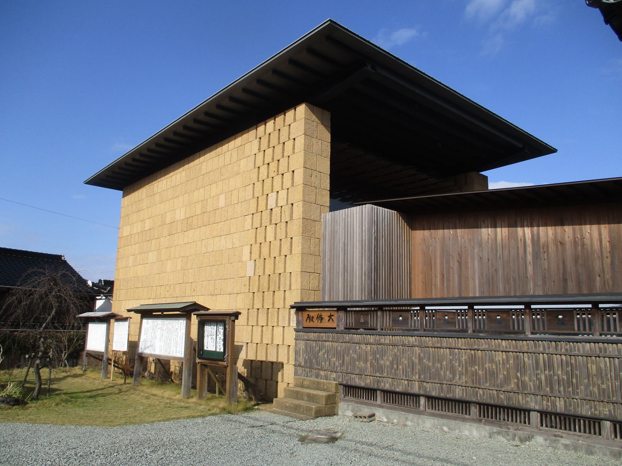 「光明皇后の発願によって創建された長門の国分尼寺。その奥の院であった安養寺にまつられる大仏は旧国宝の阿弥陀如来(現・国指定重要文化財)です。八尺八寸八分(2.96m)の丈六仏(じょうろくぶつ)は、楠を材料にした寄木造り。全身が黒いことから「黒仏」とも呼ばれています。平成15年に遷座した大仏殿は、世界的に注目される建築家の隈研吾氏の設計によるもの。外壁には、地元の土を固めた約千五百個のブロックを積み上げるという日本初の工法が採用されています。」
