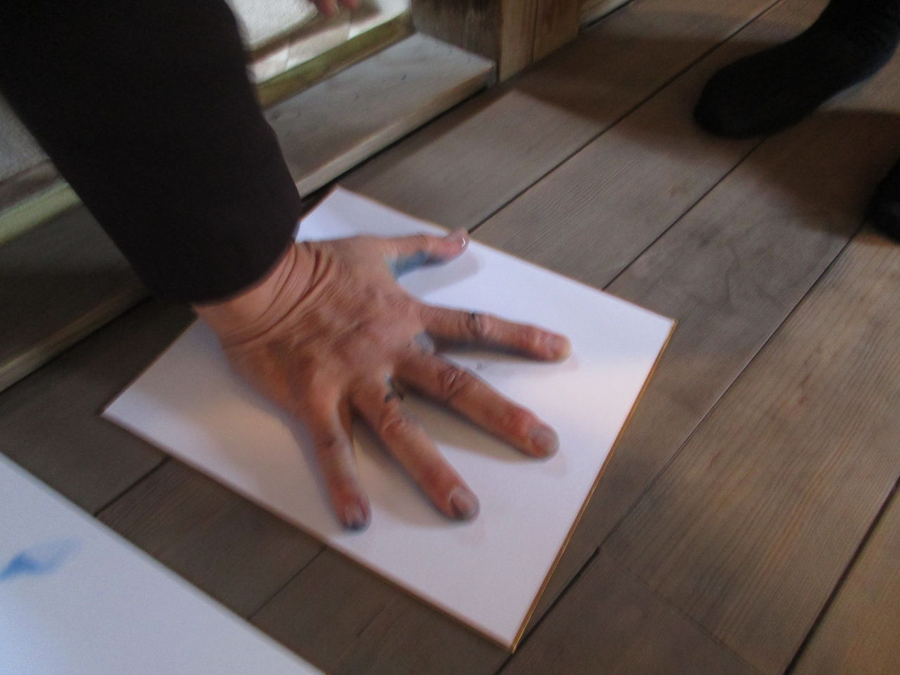 玉椿旅館の決まりごとでもある、「力士の手形」に因んで、昔、相撲で熊本県2位(1位は柔道金メダリストで国民栄誉賞も受賞された山下泰弘さん)だったという藤原先生に手形を押していただきました。