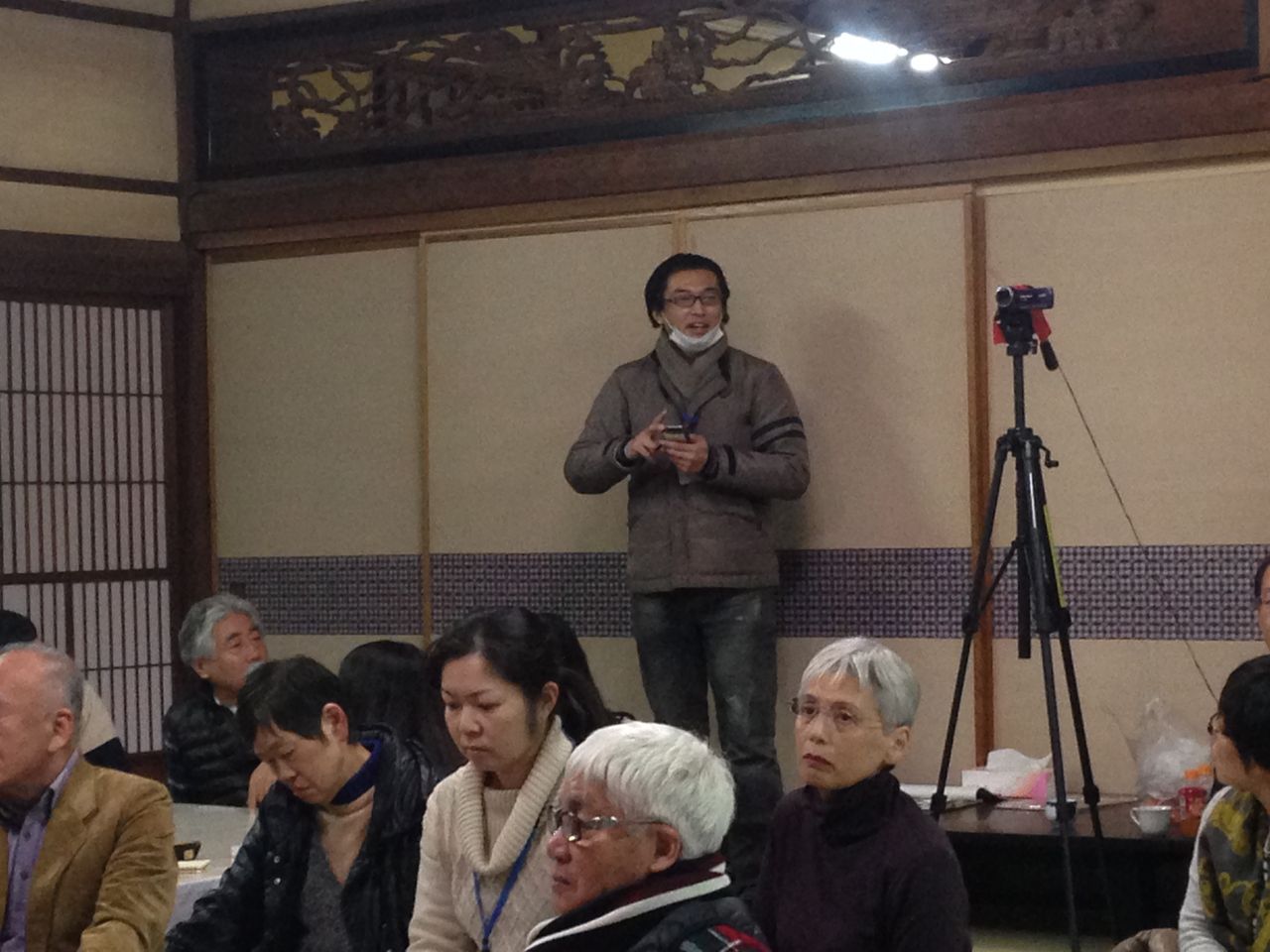 12:30頃、下関市在住で、これから向かう滝部を案内してくれる梅光学園大学で元教授をしていた岡崎新太郎先生が来て、滝部について説明をしてくれました。