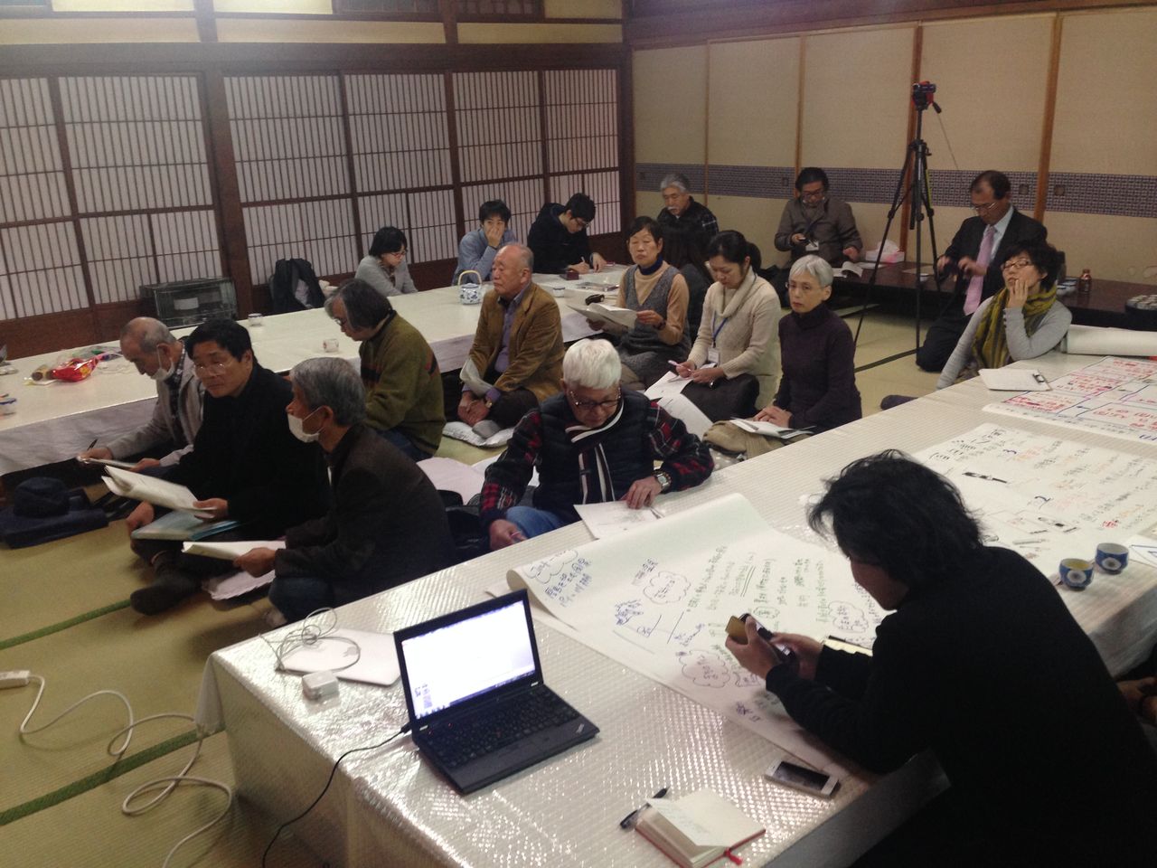 <社会人>藤原恵洋(先生)、千代田健一(非常勤講師)、森田健太郎(建築家)、高倉貴子(まちづくり専門家)、鈴木秀文(建築士)、津高守(JR九州取締役)、ジムクマ(九大研究員)、市原猛志(九大助教)、岡崎新太郎(元梅光学園大学教授・牧師)、藤井優子(玉椿旅館4代目、この企画の世話役)、藤井優子さんのご家族、玉椿旅館にかかわっているスタッフのみなさん。