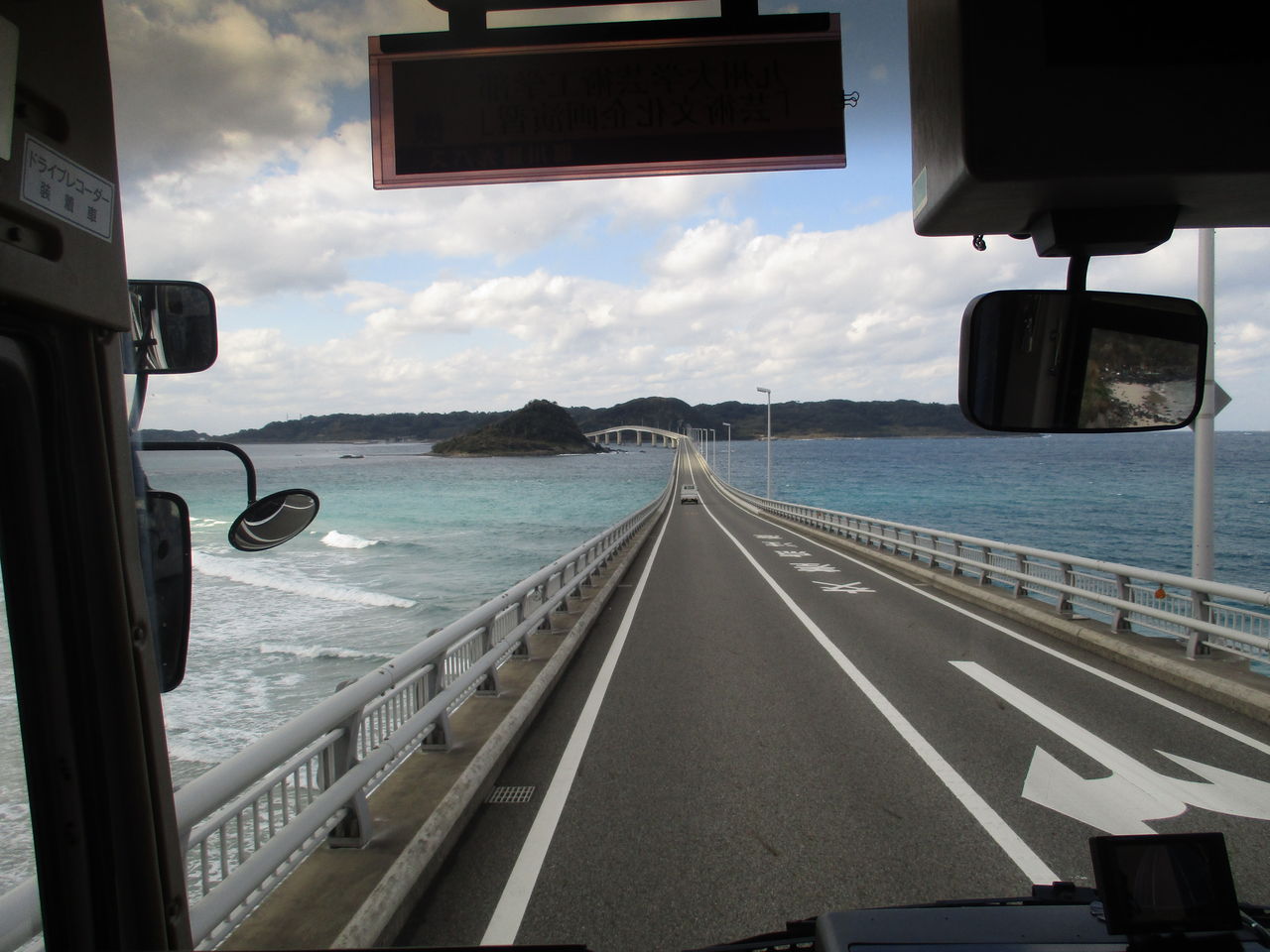 3)角島大橋を見ました。海の中を走っているようで快適でした。
