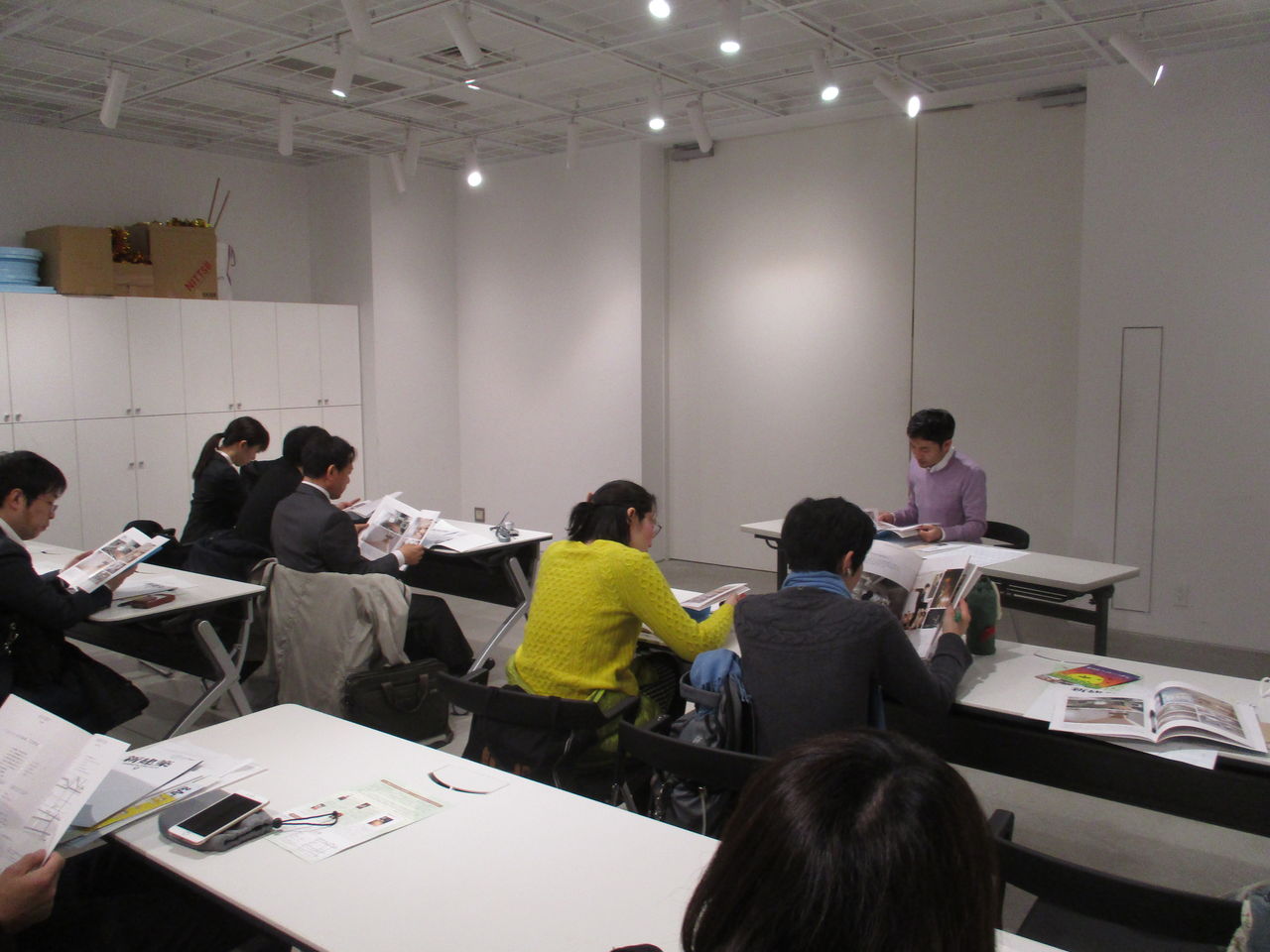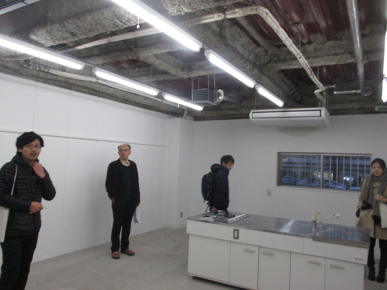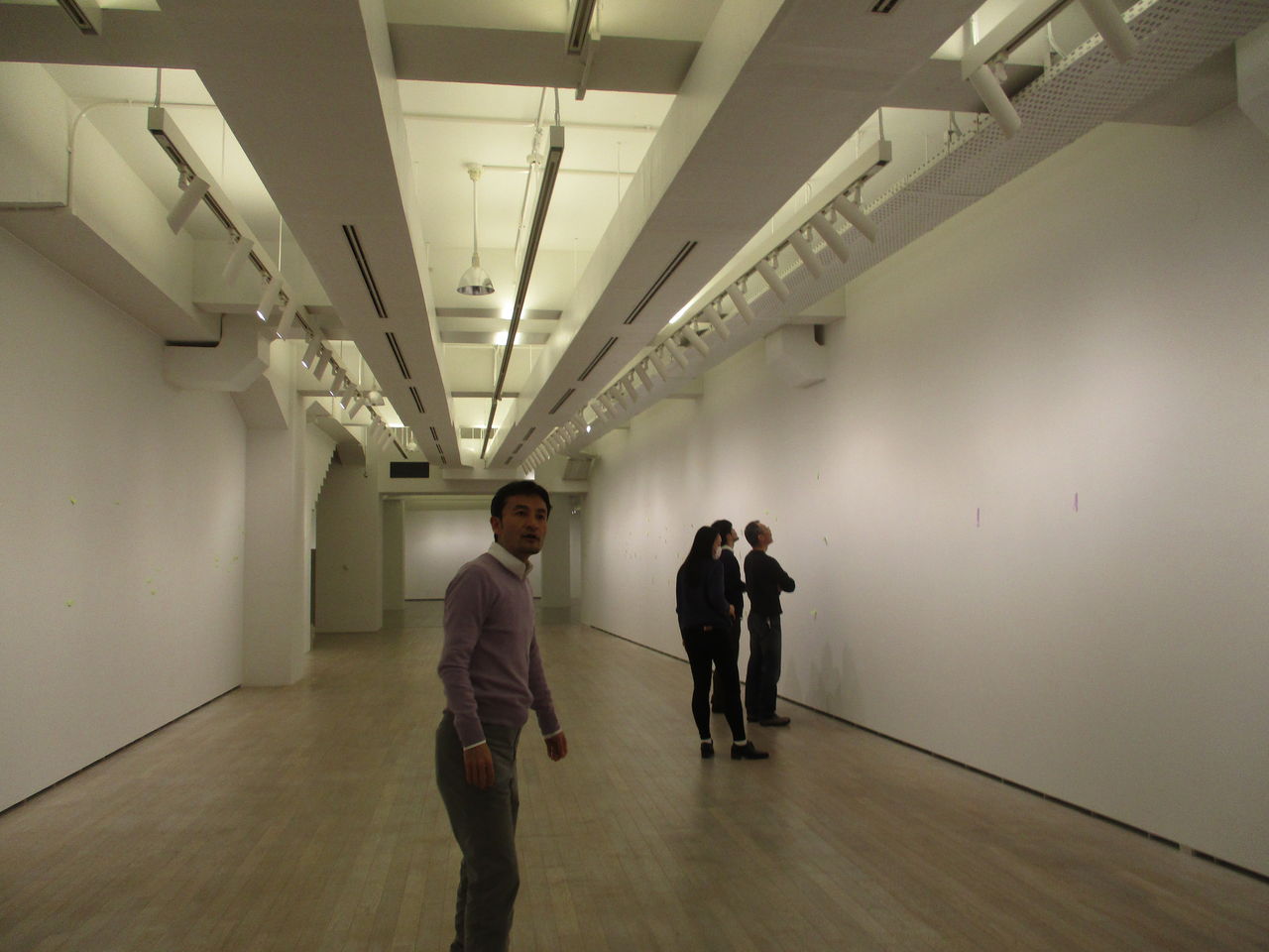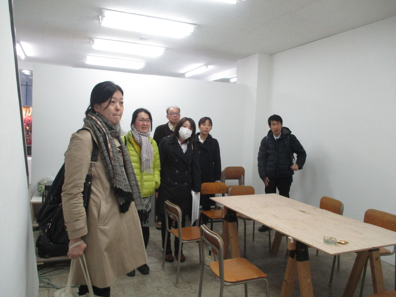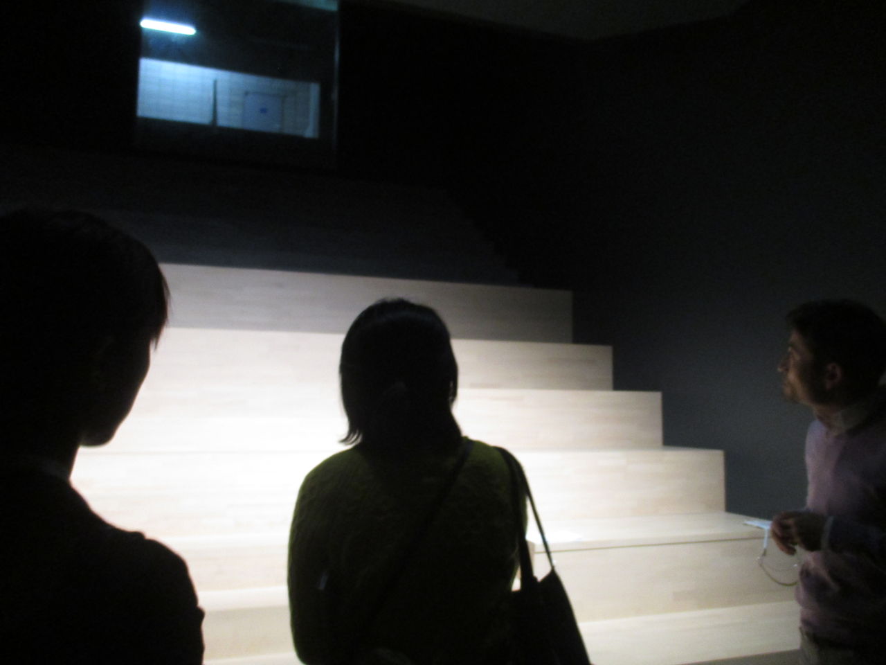 既に始まっていたエクスカーション。早速 住友文彦館長のお話を聞きます。後で國盛さんから聞いたところによると、「川俣正[通路]」(東京都現代美術館、東京、2008)、別府の混浴温泉世界2012などを手掛けてきた名うてのキュレーターとのことです。館内の案内をしていただきました。