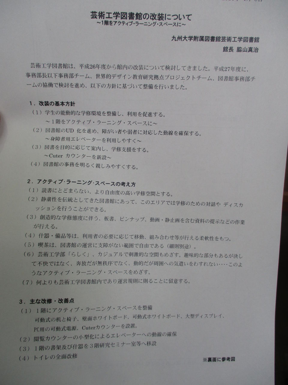 九州大学芸術工学府図書館が改装され、4月8日(土)にそのお披露目会がありました。