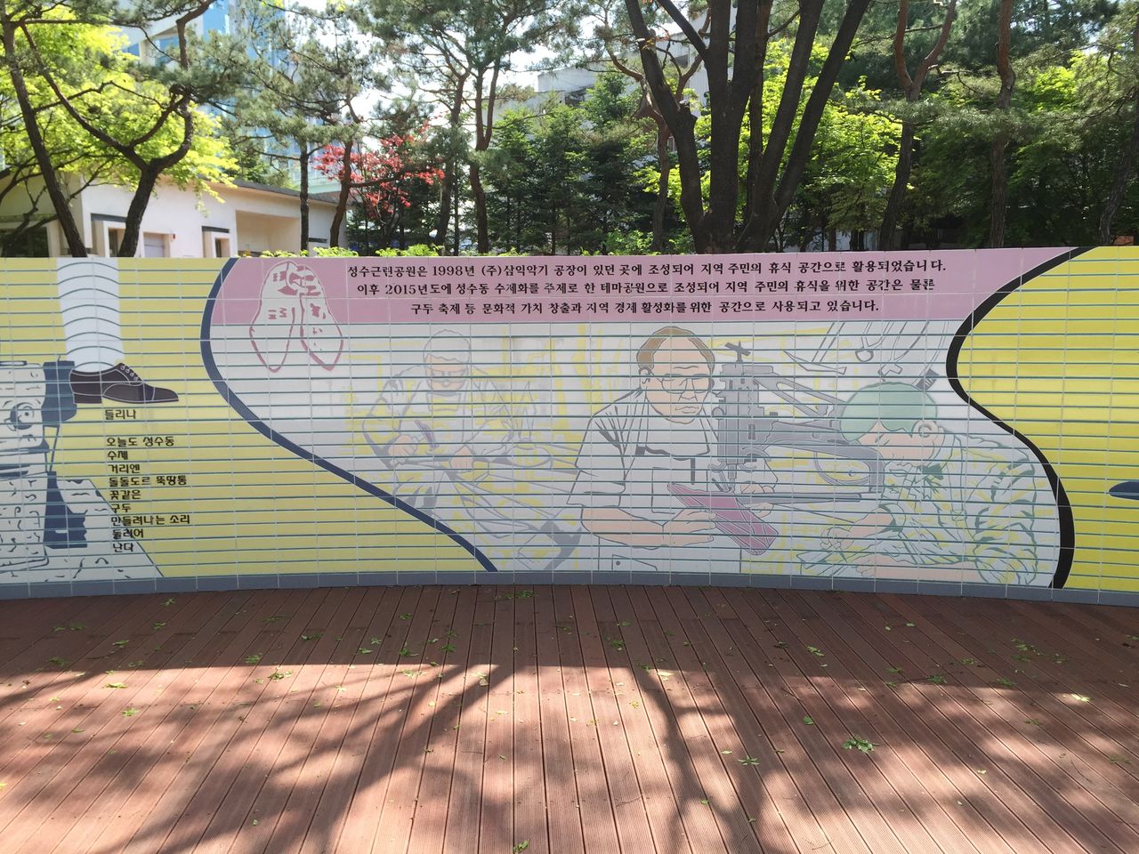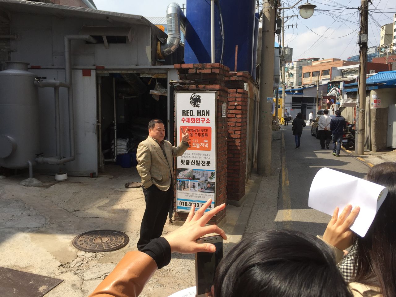 ソンスゥ洞は、手作り靴の商店が約500か所が集まっているところです。また昔から製造業の工場や倉庫が沢山あった所でしたが、最近は工場が移動した所にアーティストやデザイナが入り、地域を元気づけています。