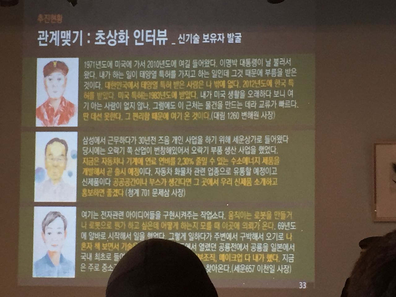 カン氏は、去年からソウル市からガバナンス活性化計画を担当しています。住民主導の都市再生を行うために、最初は地元の商店主たちとの関係づくりから始めました。その方法として取り入れたのが、住民の肖像画を描くことでした。カン氏はこのように肖像画を描くなかで、住民に声をかけ、話を聞き、発掘された話をソウル市や建築関係者に伝え、商店街の歴史や文化が都市再生に反映されるようにしたそうです。