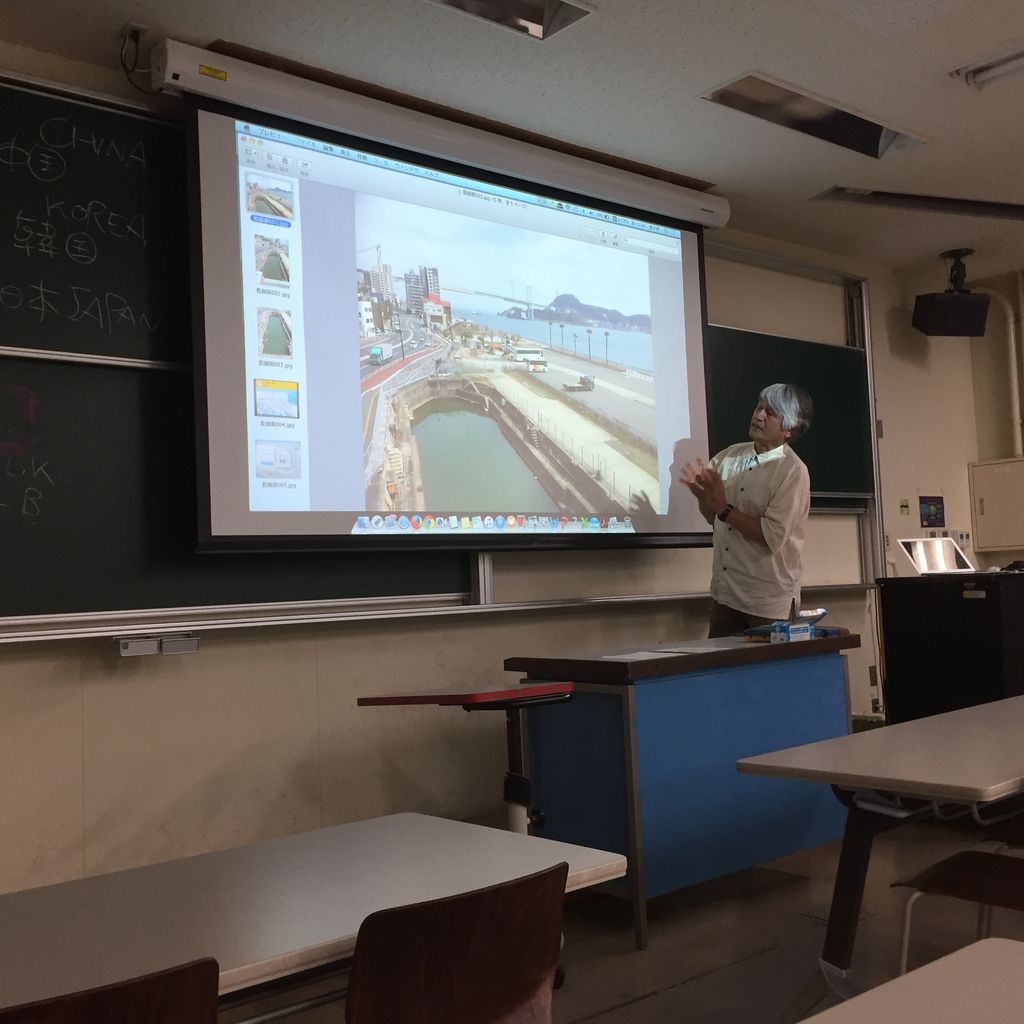 一方、私たちの身近いところには、いろんな問題が次々と行っています。今回の授業で挙げられたのは、今から約100年前の下関の唐戸で船を修理をしていたドックでした。現在は、下関市から有形文化財として登録されましたが、創造的な保護・活用方法が求められています。今年下関では、このドックを守るための会議が行われ、一応泥でドックを埋めて上に駐車場を作り守っていく埋め戻し方法が提案されたそうです。