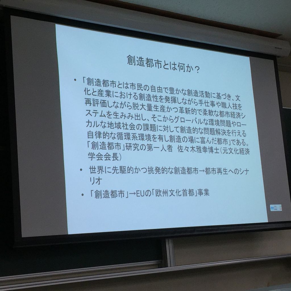6月3日(金)学府「芸術・文化環境論」の授業が行われました。今回の授業では、ブラウンフィールドをクリエイティブシティへ大転換させるための多様なやり取りや世界の代表事例などが紹介されました。