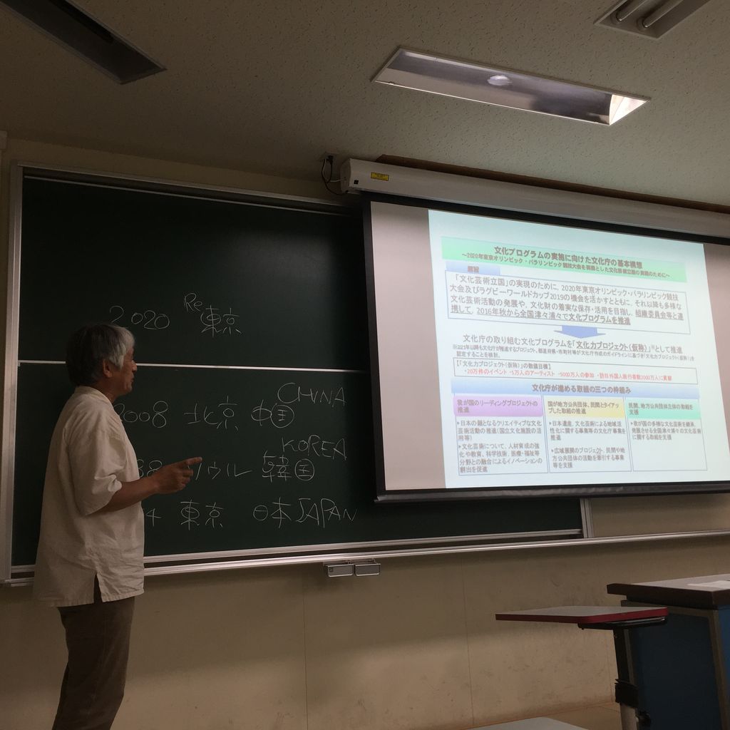 ここで重要なのは、東京のみならず地方の町や村などが全部一緒になって行うこと、さらには、民間の様々企業とのタイアップした取組の推進が緊要であると言われています。さらに、そこには、大学と学生等の参画、大学の教員、学生等による企画立案・実施、記録・評価ということ挙げられています。「芸術・文化環境論」の授業は、このような人材育成の取り組みを長い間に授業の一環として扱っているのです。