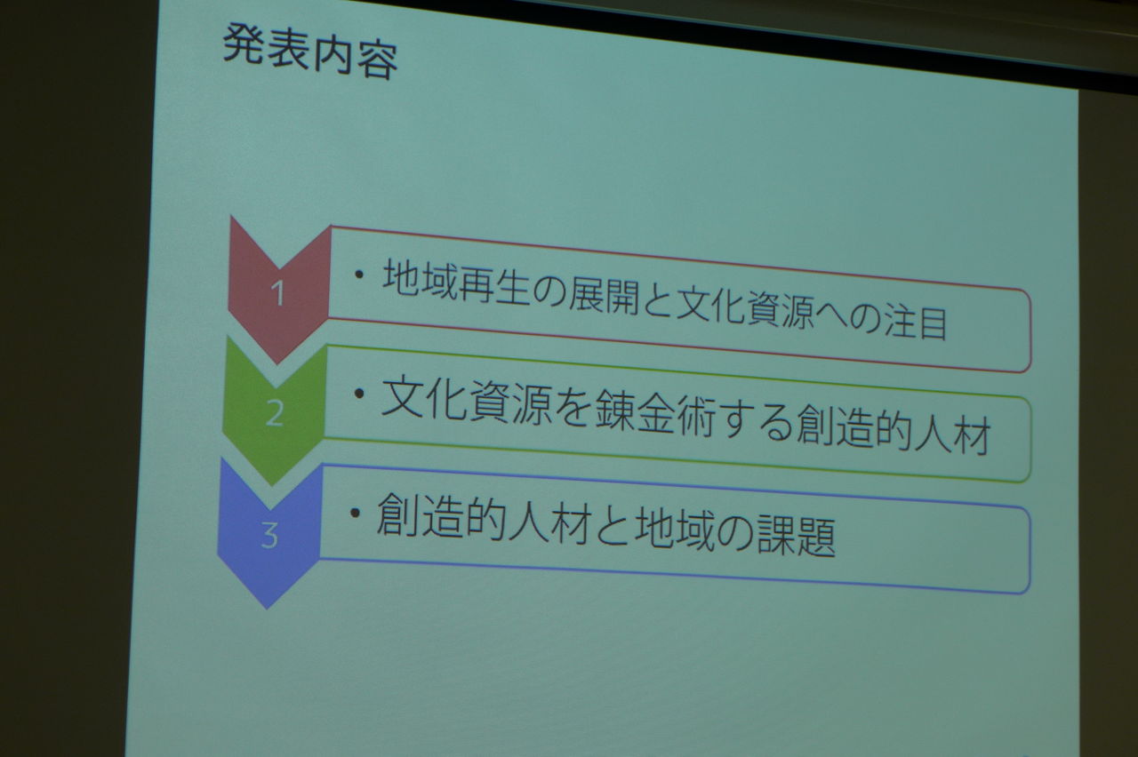 そして養父さんには、多士済々な発表内容を「国の制度を上手く活用して日本の文化的価値をどのように作り上げていくのか」という共通する観点から結びつけて頂きました。私自身は文化的価値をどのように作り出していくのか、ということに関心が集中してしまいがちでしたが「持続可能な地域の発展のために稼いでいくこと」の重要性をもご示唆を頂くことができました。