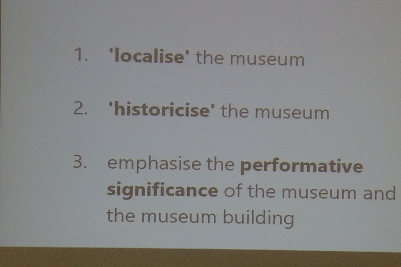 これはミューアジム(博物館、美術館)が時の政治と深く関わりながら成立してきたことへの歴史的理解にきちんと立脚しながら、では今後、私たちにとってのミューアジム(博物館、美術館)とはいったいどのように成立し、どのように空間をしつらえ、どのように運営し、どのように社会的なプレゼンス(存在感)を獲得していけば良いのだろうか、という極めてアクチュアル(同時代で現実的・実践的)な感覚で議論を重ねていこうというひとときとなりました。