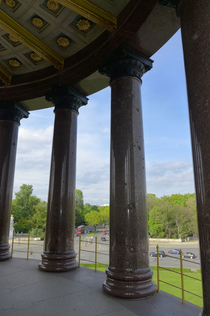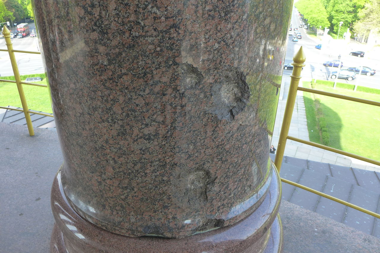 当初、帝国議会の前面に位置し広場の中心に立っていたものを、ヒットラー台頭後、ベルリンを世界首都にするゲルマニア計画の実施に先立ち、1939年にティアーガルテンの中心軸とも言えるグローサーシュテルンのロータリー中心部に移転、その時に高さも嵩上げしていったのです。