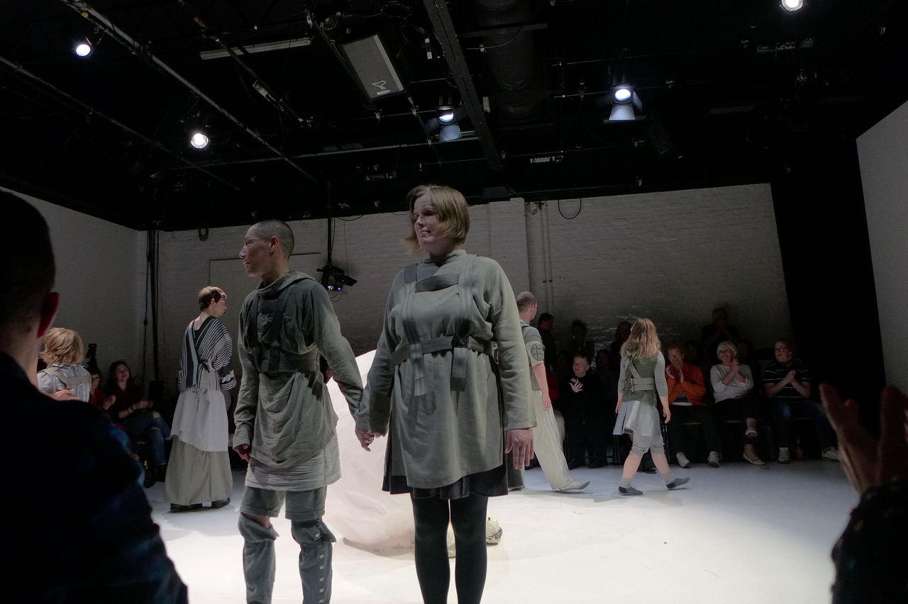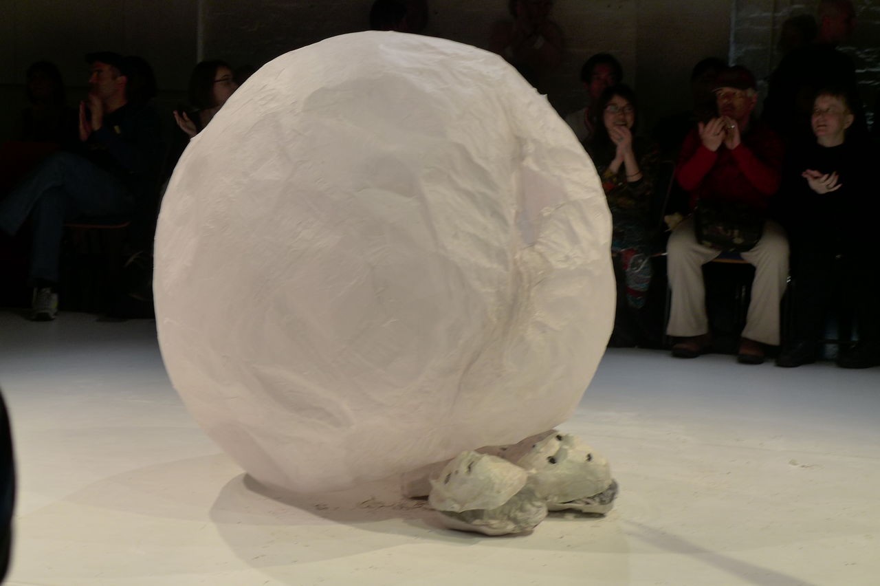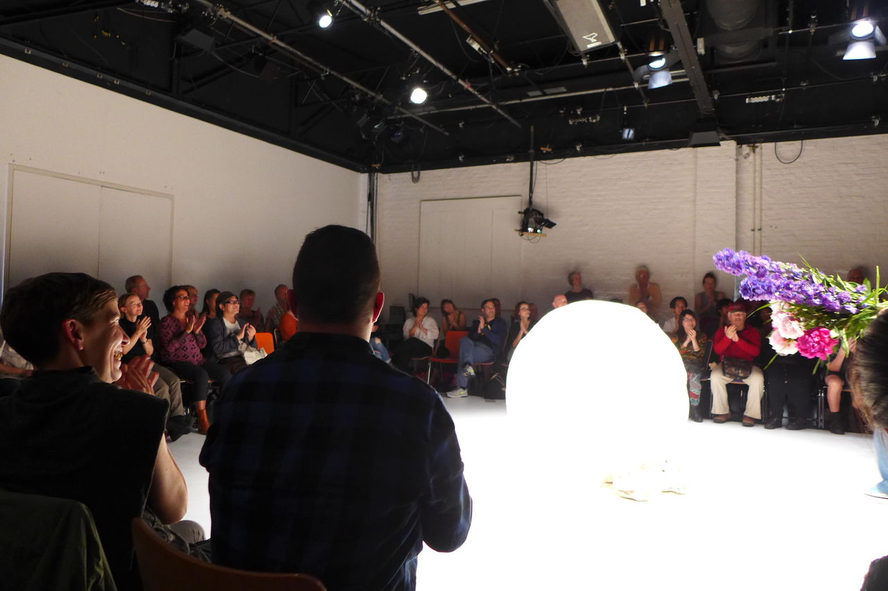 スクエアな会場に誘われるまま入り、席に座ると、観客席の中にはあらかじめいくつかのシートがキープしてあり、どうやら作品中に用いるようなのです。