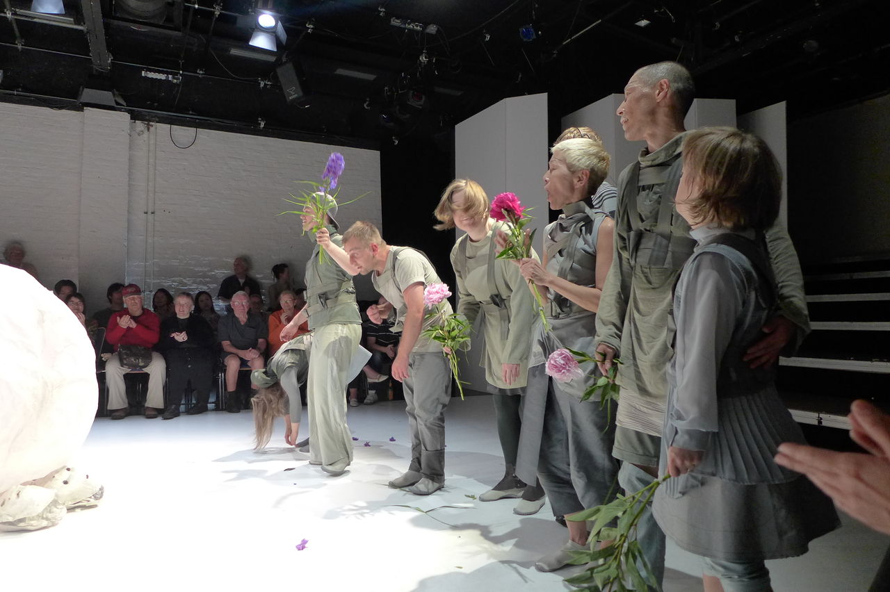 それは既成の舞踏やダンスの領域を遥かに超えた包括的なパフォーマンス舞台となっており、ユーコさんもメンバーに交じって踊っていきます。