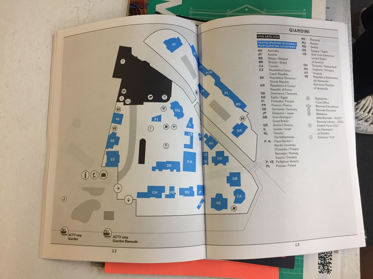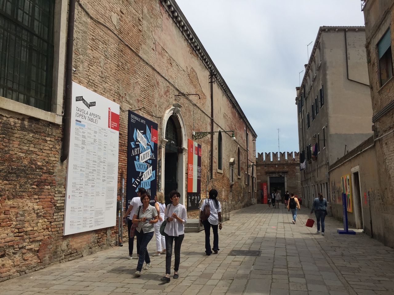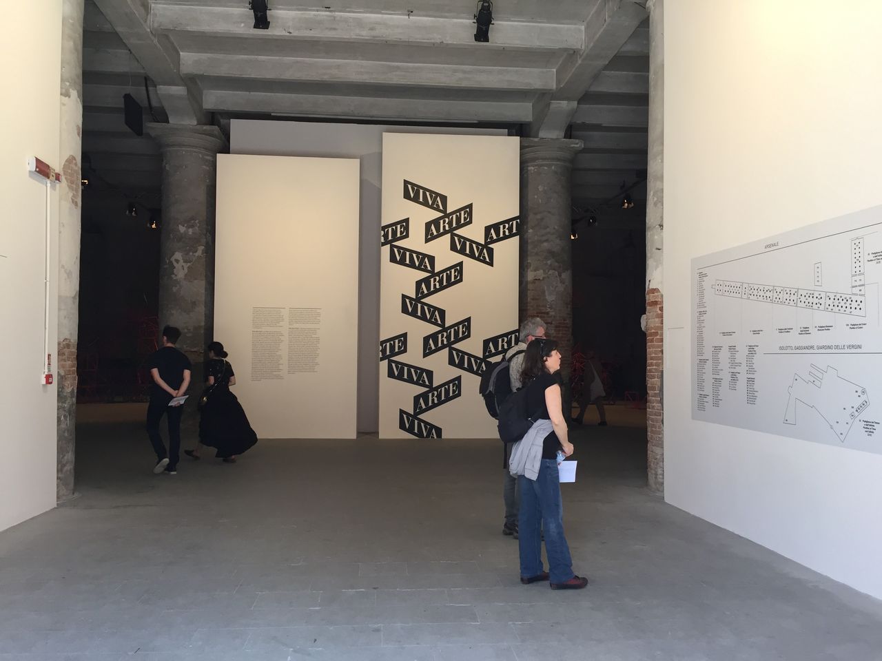 今年のヴェネチアビエンナーレのテーマは 「Viva Arte Viva」。Vivaはイタリア語で万歳、Arteは芸術という意味で「万歳!芸術 バンザイ!」という意味になります。また、2017年ヴェネチアビエンナーレの総監督はクリスティンマセル(Christine Marcel)です。クリスティンマセル(Christine Marcel)は2013年ベニスビエンナーレのフランス館のキュレーターもしましたし現在はフランスパリポンピドゥーセンター(Pompidou Center)で現代美術部門のキュレーターとして活躍しています。クリスティンマセルは今度の展示を「アーティストと一緒に、アーティストにより、アーティストのために」ということに焦点を合わせて現時代に芸術家たちがどのような社会的な役割をしなければならないなのかということを考えながら企画たと伝えていました。