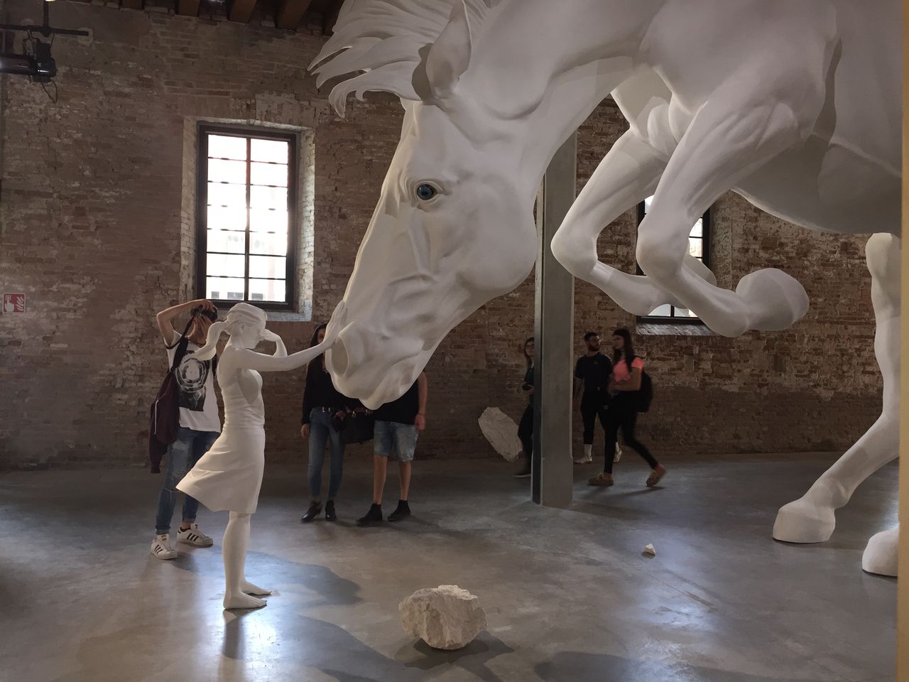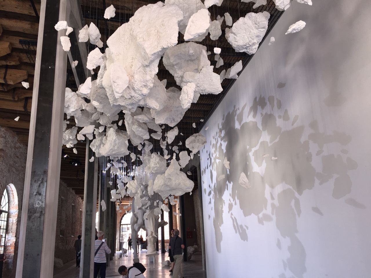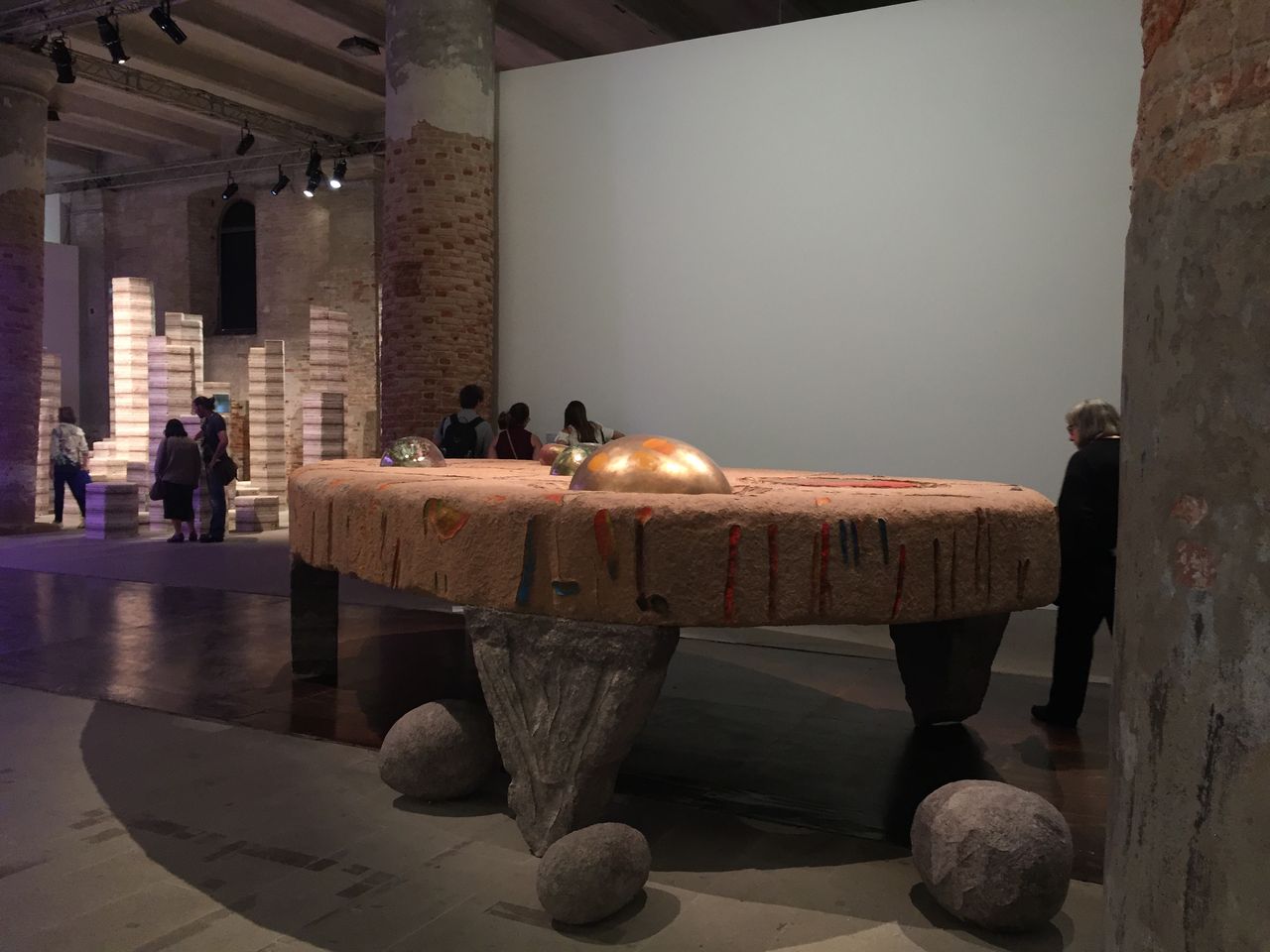 今年のヴェネチアビエンナーレのテーマは 「Viva Arte Viva」。Vivaはイタリア語で万歳、Arteは芸術という意味で「万歳!芸術 バンザイ!」という意味になります。また、2017年ヴェネチアビエンナーレの総監督はクリスティンマセル(Christine Marcel)です。クリスティンマセル(Christine Marcel)は2013年ベニスビエンナーレのフランス館のキュレーターもしましたし現在はフランスパリポンピドゥーセンター(Pompidou Center)で現代美術部門のキュレーターとして活躍しています。クリスティンマセルは今度の展示を「アーティストと一緒に、アーティストにより、アーティストのために」ということに焦点を合わせて現時代に芸術家たちがどのような社会的な役割をしなければならないなのかということを考えながら企画たと伝えていました。