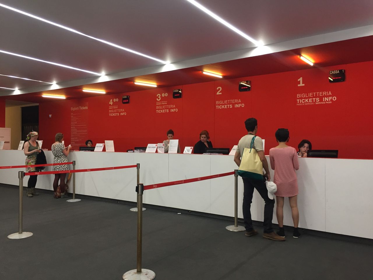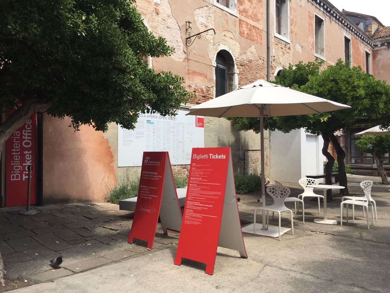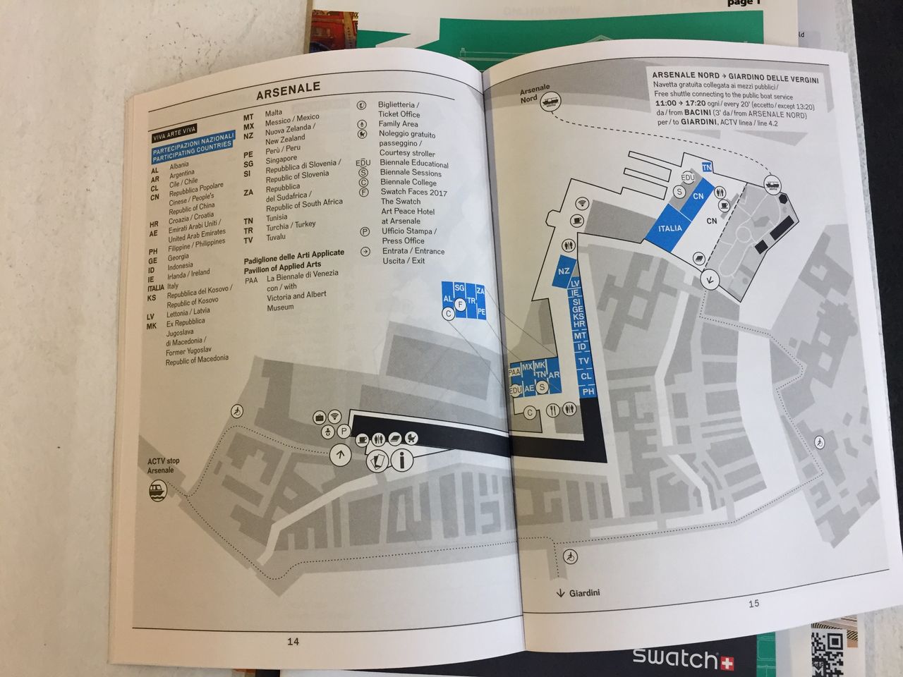 チケットを買う時ジャルディーニ(Giardini)、アルセナーレ(Arsenale)のチケットを一緒に買うことができますが、入る時には空間が分けられていて別にチケットを提出してから入ります。ジャルディーニ(Giardini)、アルセナーレ(Arsenale)に入るチケットがなくてもベニスの全地域では無料で見られる展示が多くて、このビエンナーレ期間中ではヴェネチア自体が一つの作品になっていると感じられました。とても大きくて広いので1日に全部を見ることは無理で、効果的な見学ルートを計画した方がよいかもしれません。今年参加する国は51カ国で、120名の作家の作品をみることができます。