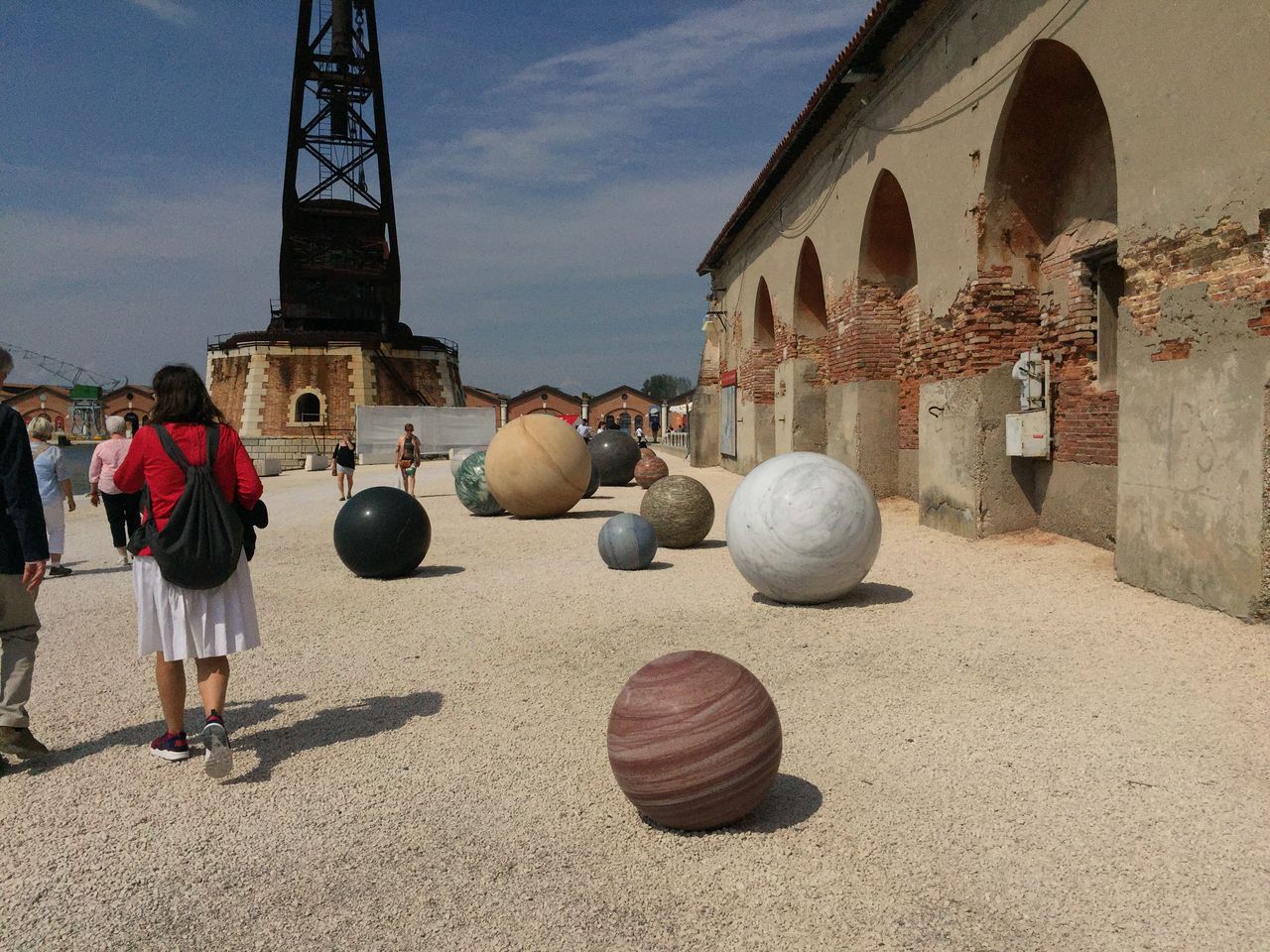 ここでの重要な展示空間は二つあり、ひとつはカステッロ公園(”Giardini di Castello ”でこれを短くしてジャルディーニ”Giardini”と言います)とやアルセナーレ(Arsenale)です。ジャルディーニは公園の中に中央展示館や国別に29カ所の展示館が集まっています。アルセナーレは造船所、武器製造所だった建物を改造して展示館として活用している空間です。ジャルディーニは29の展示館のみなので、ここに展示館が無い国はアルセナーレに展示されます。この二つの空間のどちらにも展示館がない国はヴェネチアの全地域の中で特別に展示館を開くことができます。
