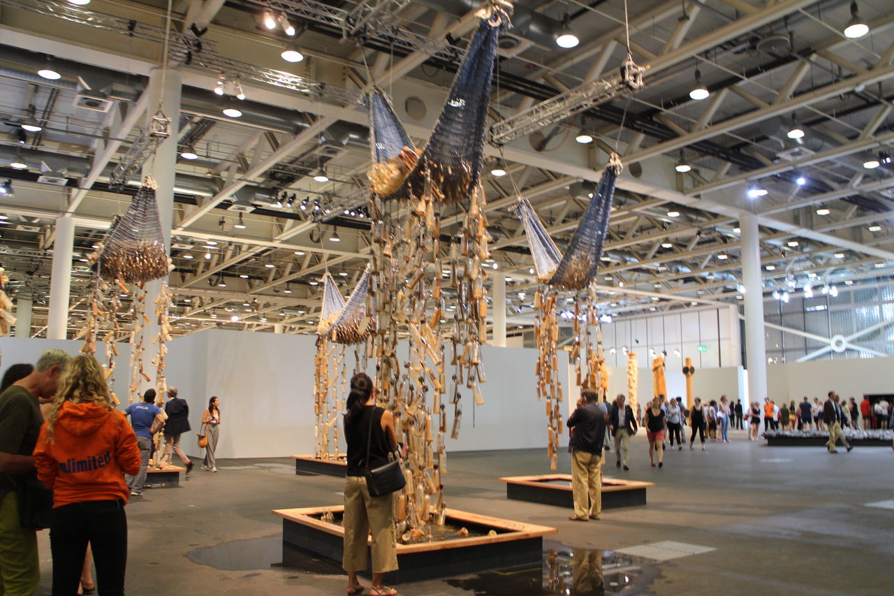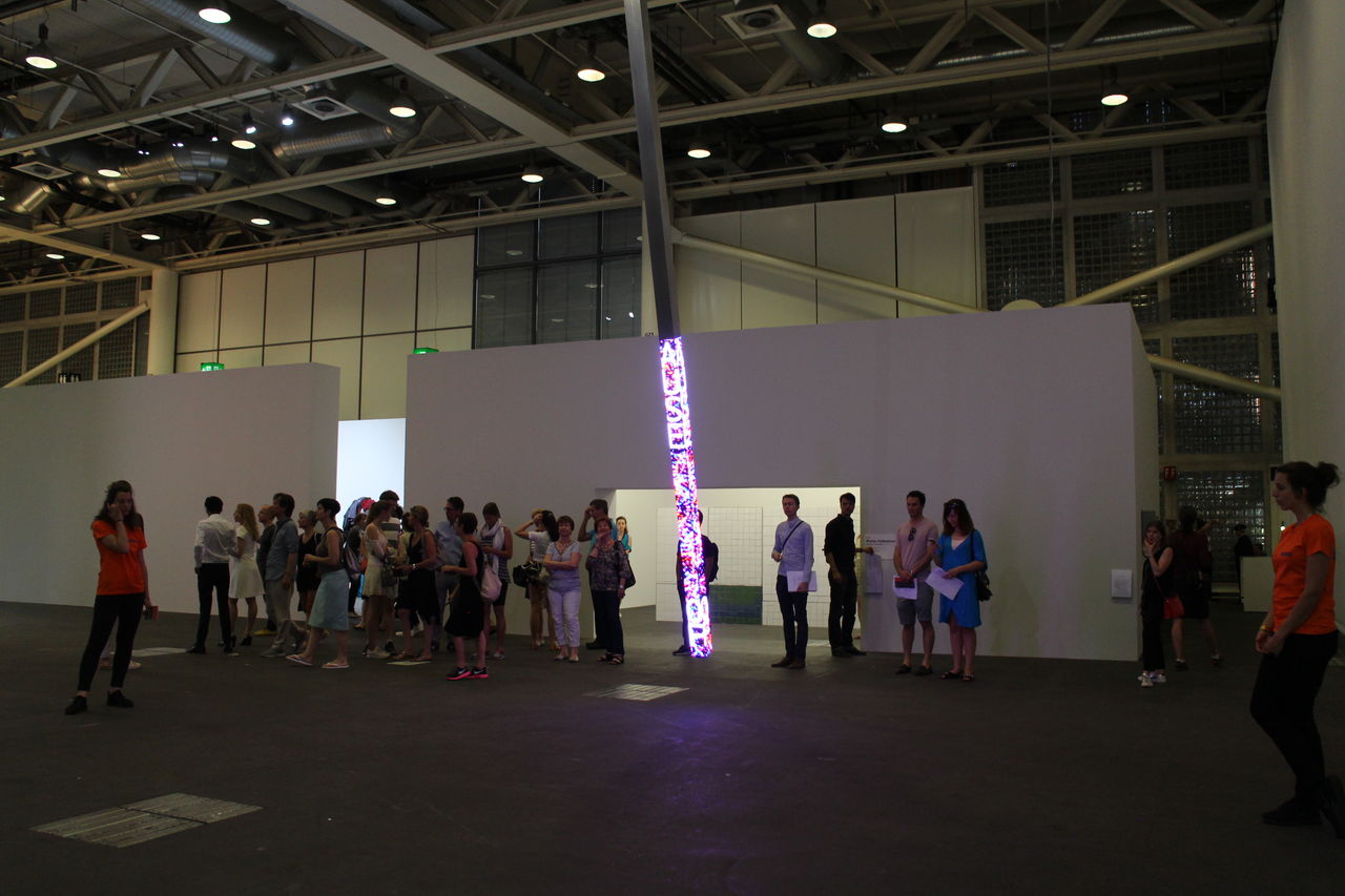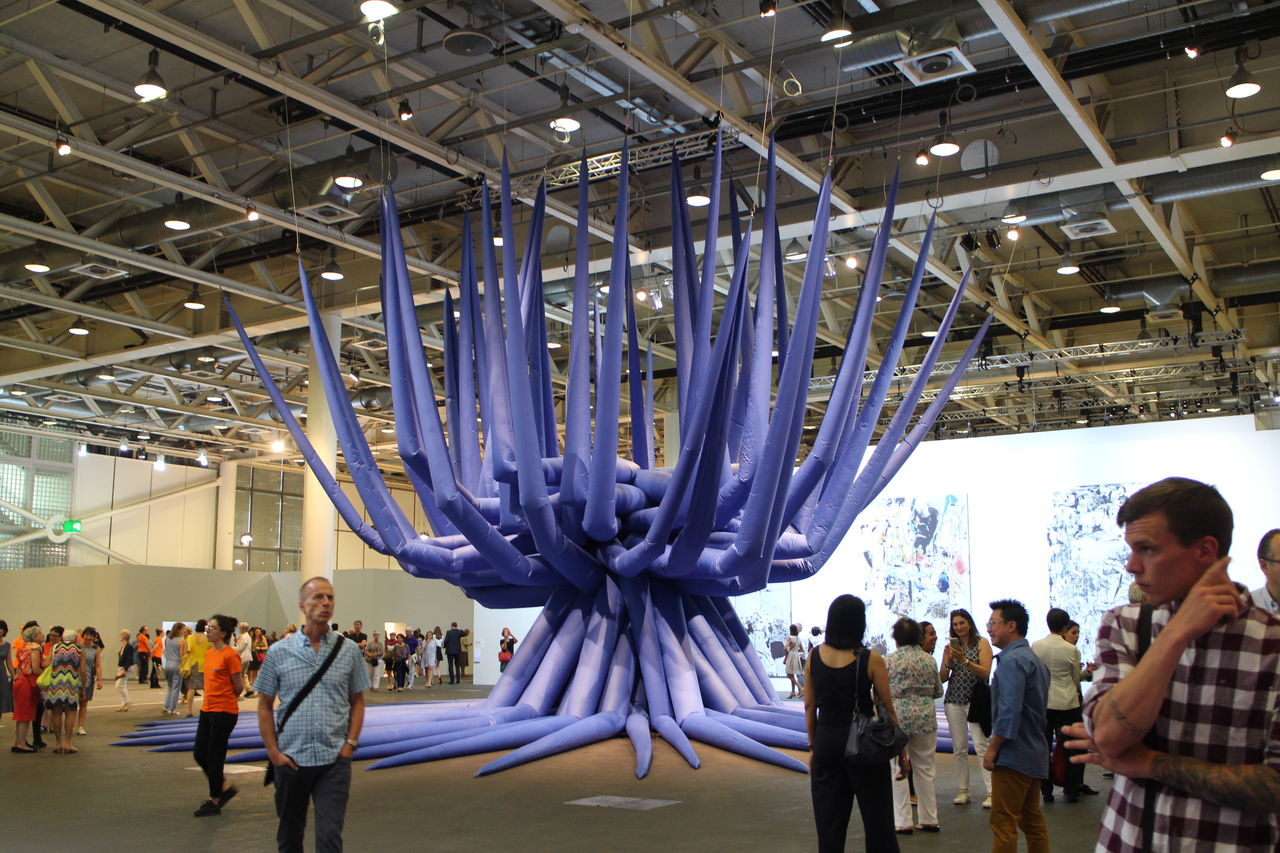 中に入りましたら多くの現代美術の作品が展示されていました。作品の数が多かったので、自分が必ずみたいと考えている作品やギャラリーは地図を持ち歩きながら、観覧することができました。「アートフェアで現代美術の最近の流れを読みことができる」という話を作品を観覧してみたらすぐ感じることができました。彫刻、絵画、設置美術、パフォーマンス、オブジェなど様々な形の作品を見ることができました。展示をみながら、現代美術はいつも作品を通して新しい感情や感覚を感じられると思いました。