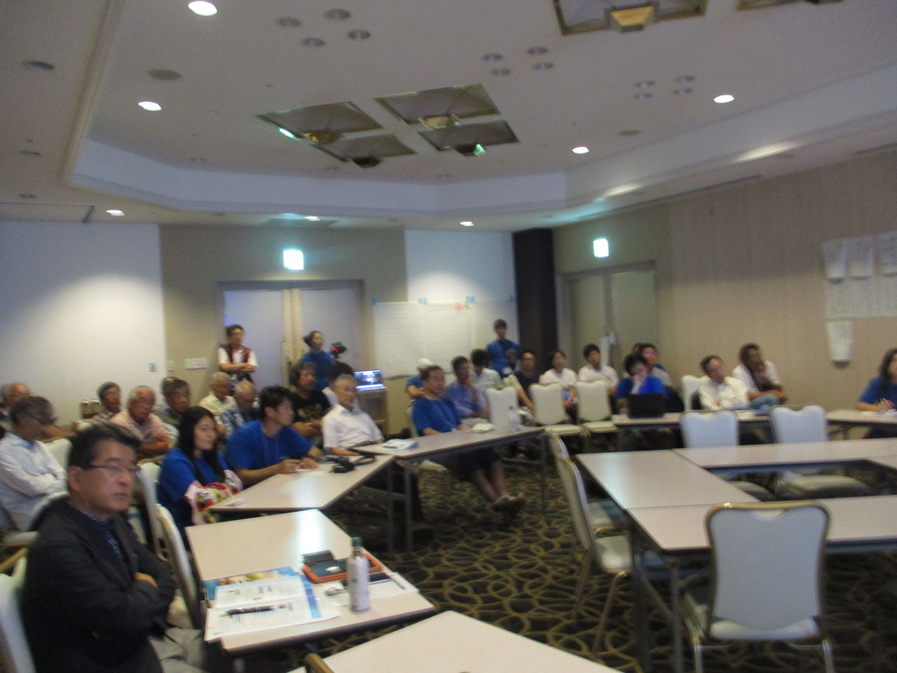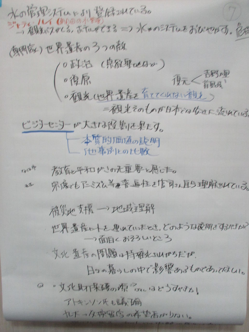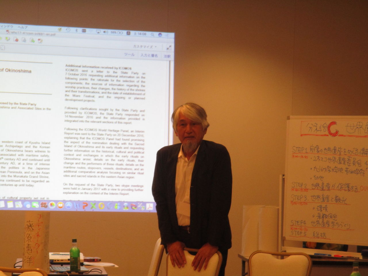 お愛嬌ですが、会場はユネスコ世界遺産委員会の国際会議風に机を並べられました。参加者は35名を超え、2時間半にわたり熱心な意見交換がなされて行きました。